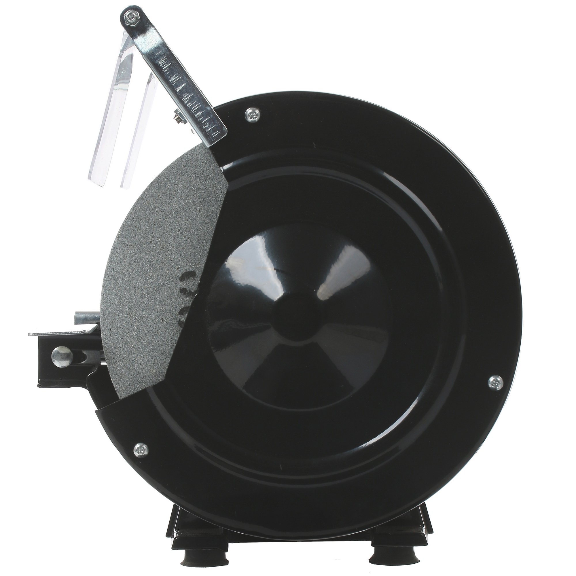 Точильный станок выполнен в прочном корпусе из металла и пластика и предназначен для стационарного использования. Важной особенностью модели является его высокая надежность и безопасность – в частности, в конструкции предусмотрен специальный щиток и кожух для защиты оператора от летящей пыли и осколков. Питание инструмента осуществляется от сети 230 В.