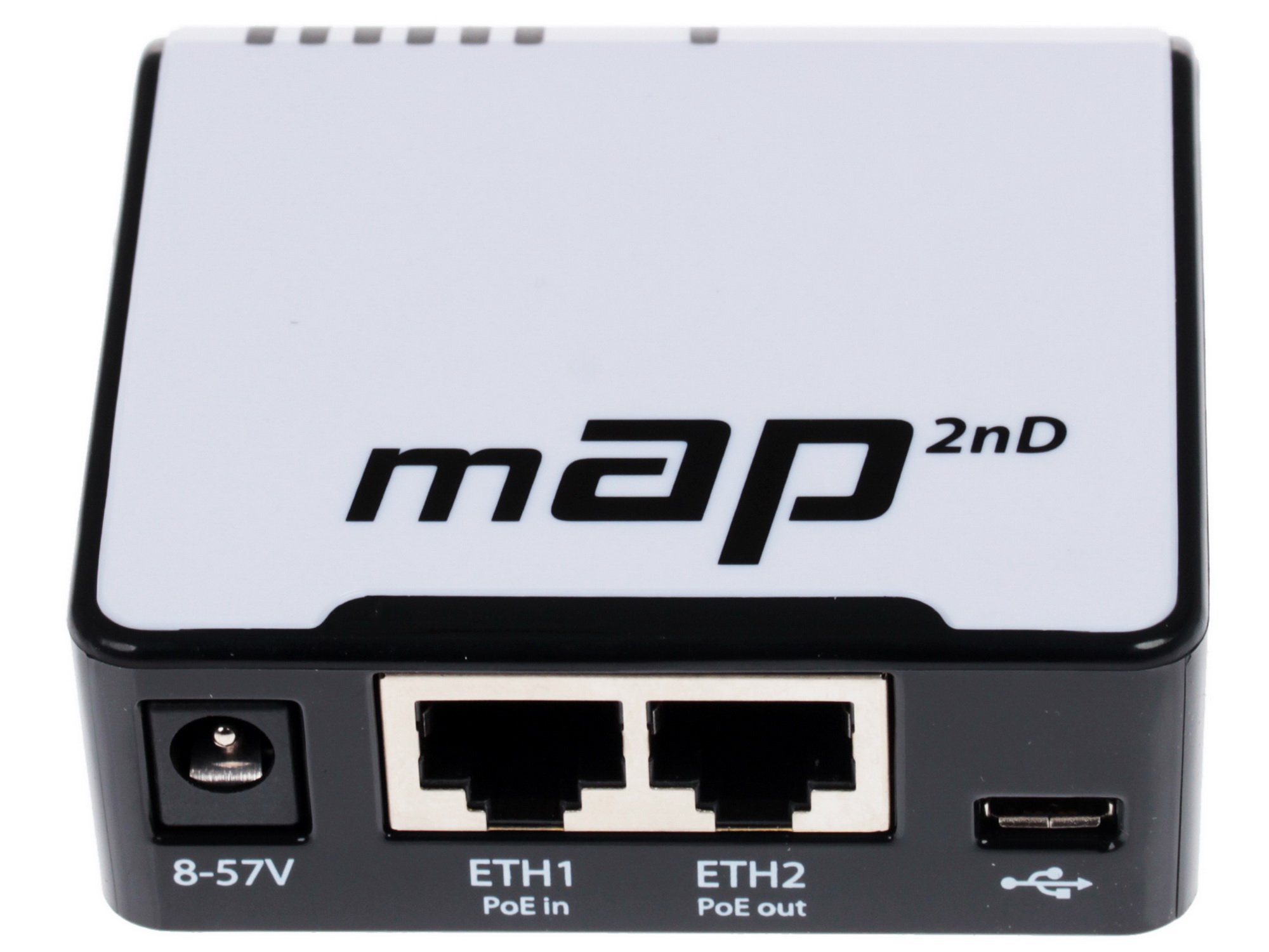 Для беспроводного доступа к сети и подключения к ней устройств используйте такую базовую станцию как точка доступа Mikrotik mAP RBmAP2nD. Она работает в режиме маршрутизатора, организовывая подключение к интернету по Wi-Fi со скоростью 300 Мбит/с. за хорошее соединение отвечает внутренняя антенна с коэффициентом усиления в 1.3 dBi. Из интерфейсов подключения имеются 2 Ethernet-порта и 1xUSB. Диапазон рабочих температур Mikrotik mAP RBmAP2nD варьируется от -30 ℃ до 70 ℃. Это компактное миниатюрное устройство, которое крепится на стену и не займет много места в вашем доме.