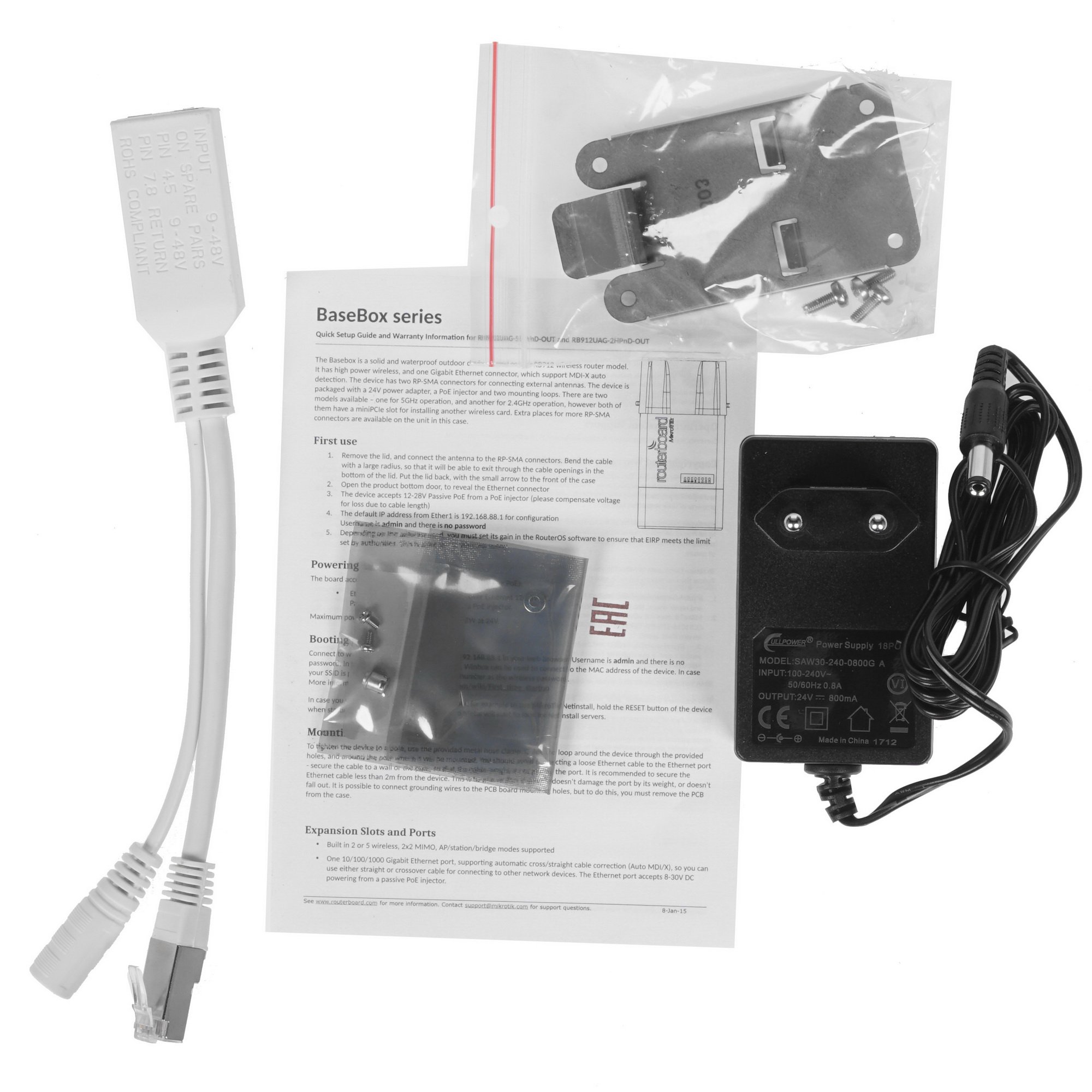 Точка доступа MikroTik RB912UAG-5HPnD-OUT BaseBox 5 (RouterBOARD 912UAG with 600Mhz Atheros CPU, 64MB RAM, 1xGigabit LAN, USB, miniPCIe, built-in 5Ghz 802.11a/n 2x2 two chain wireless with two RP-SMA connectors, Ro