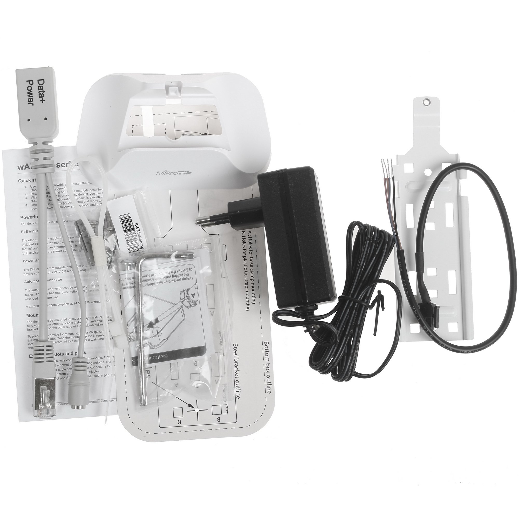 Частота работы передатчика – 2.4 ГГц. Это устройство поддерживает стандарт Wi-Fi 802.11n. Пиковая скорость передачи данных – 300 Мбит/с. Этого достаточно, чтобы пользоваться различными сервисами и скачивать объемные файлы из Интернета. Комплектация: PoE-инжектор, крепление, адаптер питания.