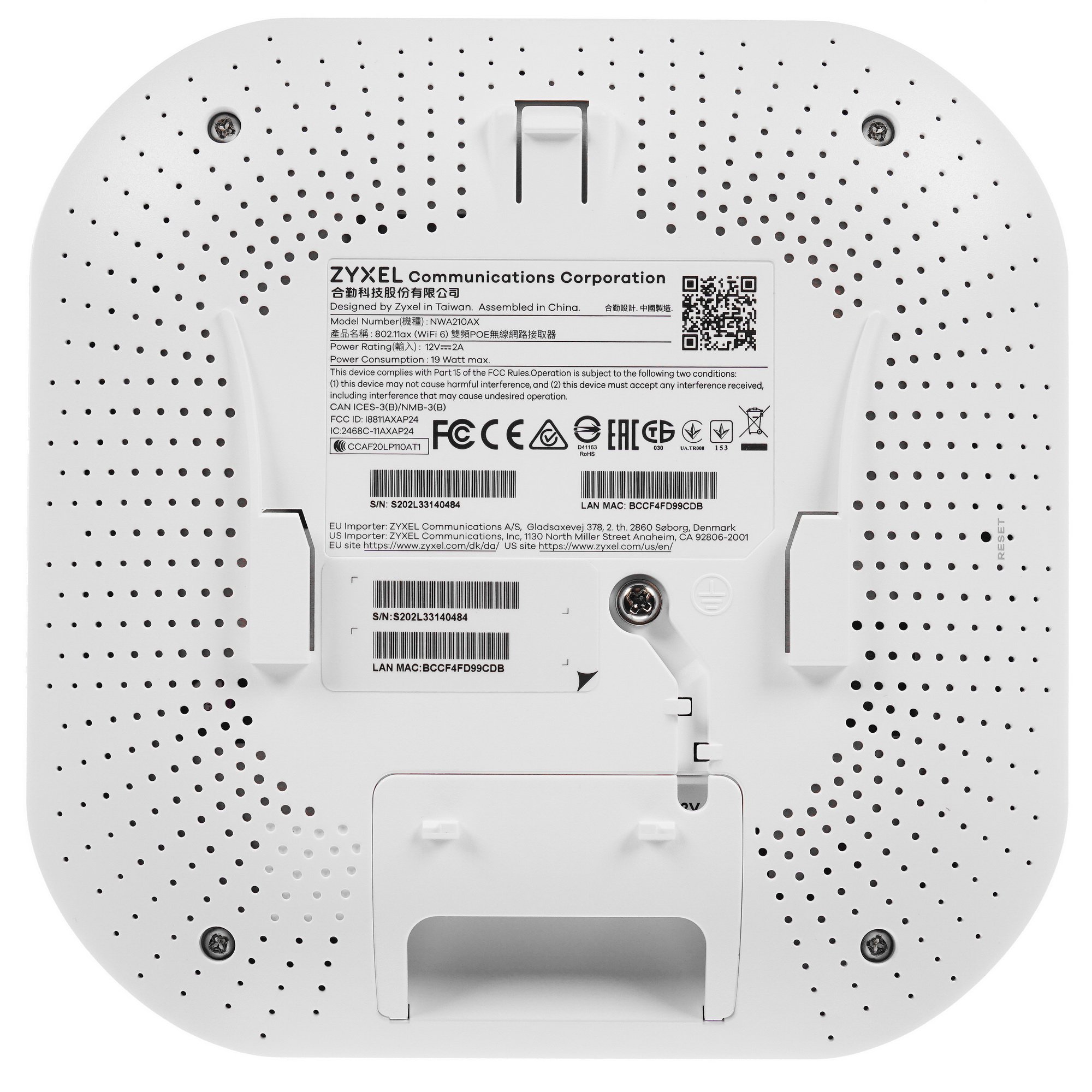 Точка доступа Zyxel NebulaFlex NWA210AX выполнена в корпусе компактных размеров и за счет лаконичного дизайна легко сможет дополнить собой любой офисный интерьер. Настройка и управление устройством осуществляется при помощи веб-интерфейса или «облачного» сервиса Zyxel Nebula, командной строки или мобильного приложения. Для подключения кабельного соединения на корпусе предусмотрено несколько стандартных сетевых разъемов с поддержкой PoE. Устройство поставляется с набором креплений и адаптером питания.