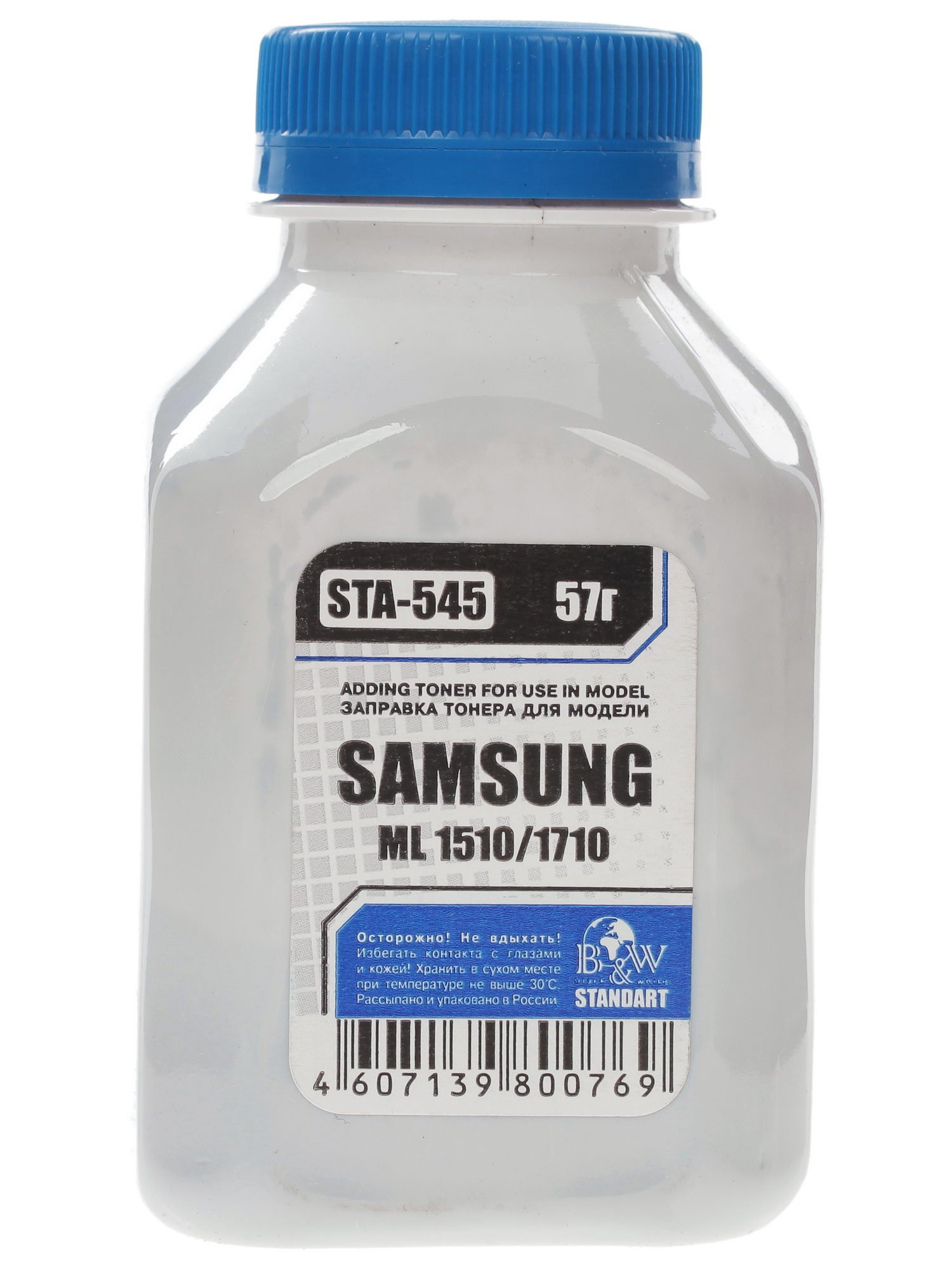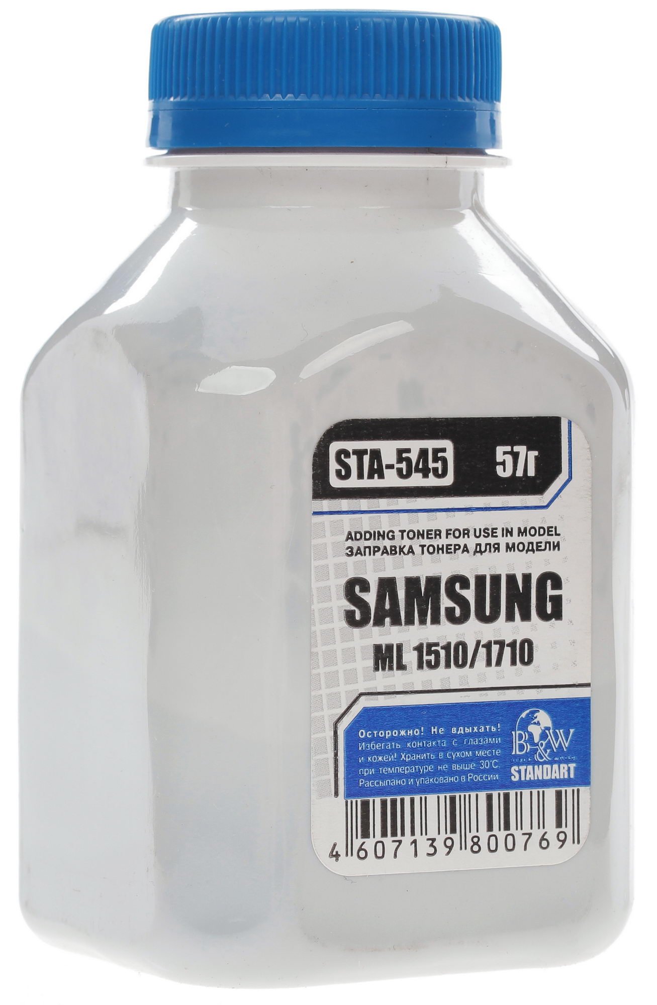 Благодаря использованию тонера B&W STA-545 пользователь получит возможность создавать высококлассные отпечатки документов превосходного качества. Применение этого расходного материала позволяет значительно увеличить эффективность печати и повысить производительность принтера. Тонер предназначен для применения с печатным оборудованием лазерного типа Samsung ML-1510/1710. Кроме того, тонер гарантирует бесперебойную работу Вашего печатного оборудования. B&W STA-545 обладает емкостью 57 грамм. Этого ресурса хватает на осуществление печати приблизительно 2600 документов в черных цветах.