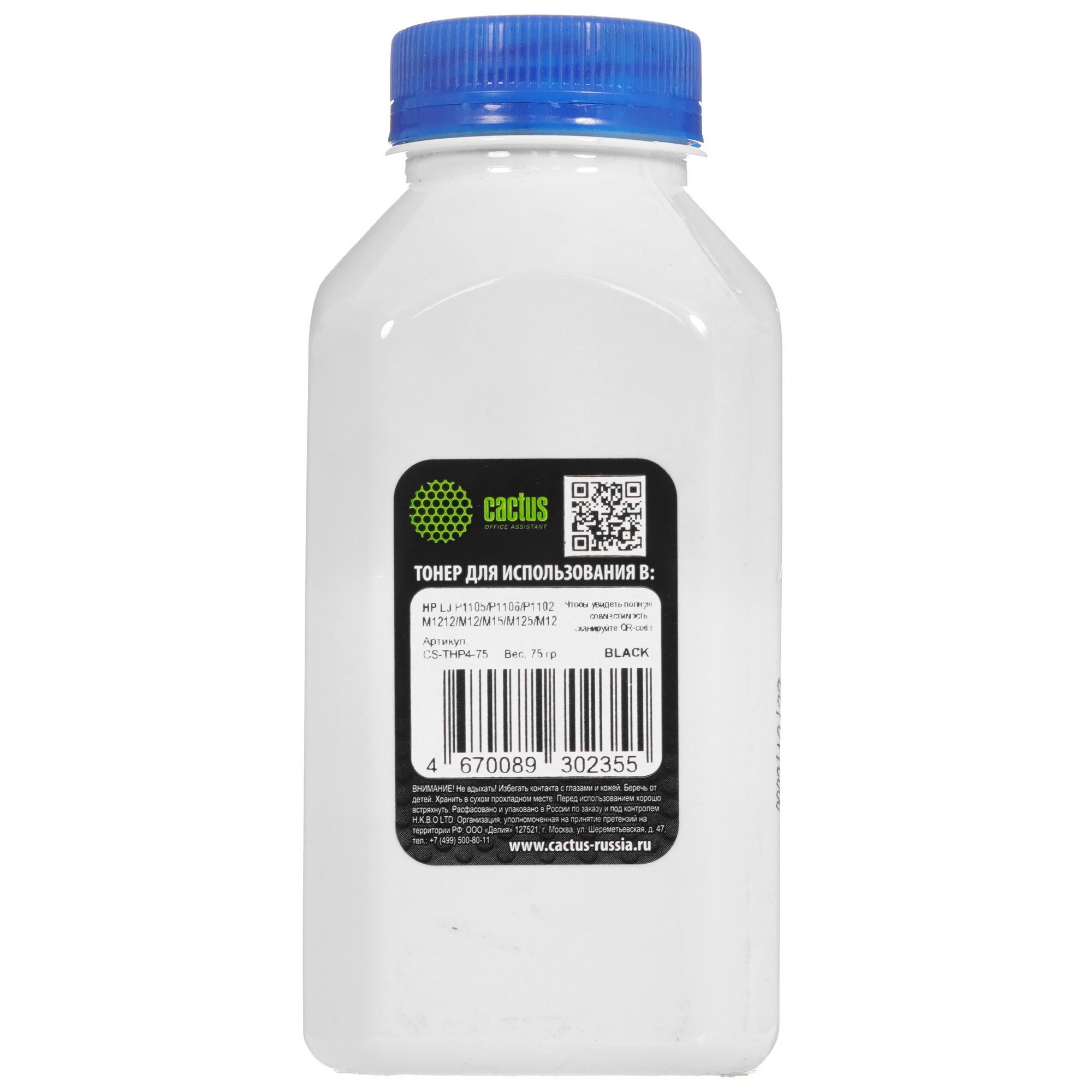 Тонер Cactus CS-THP4-75 черный флакон 75гр. для принтера HP LJ P1005/P1006/P1100/P1102