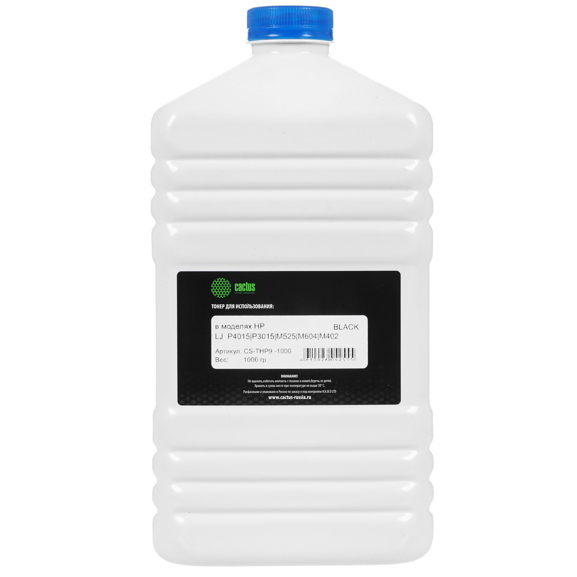 Поставка тонера Cactus CS-THP9-1000 осуществляется в прочном пластиковом флаконе емкостью 1000 г. За счет этого смесь отлично подойдет для многократной заправки картриджей. Плотно закручивающаяся крышка флакона обеспечивает его герметичность, защищая смесь от влаги и других негативных воздействий и позволяя надежно хранить ее на протяжении длительного времени. Для удобной и быстрой заправки картриджей рекомендуется использовать воронку или другие приспособления.