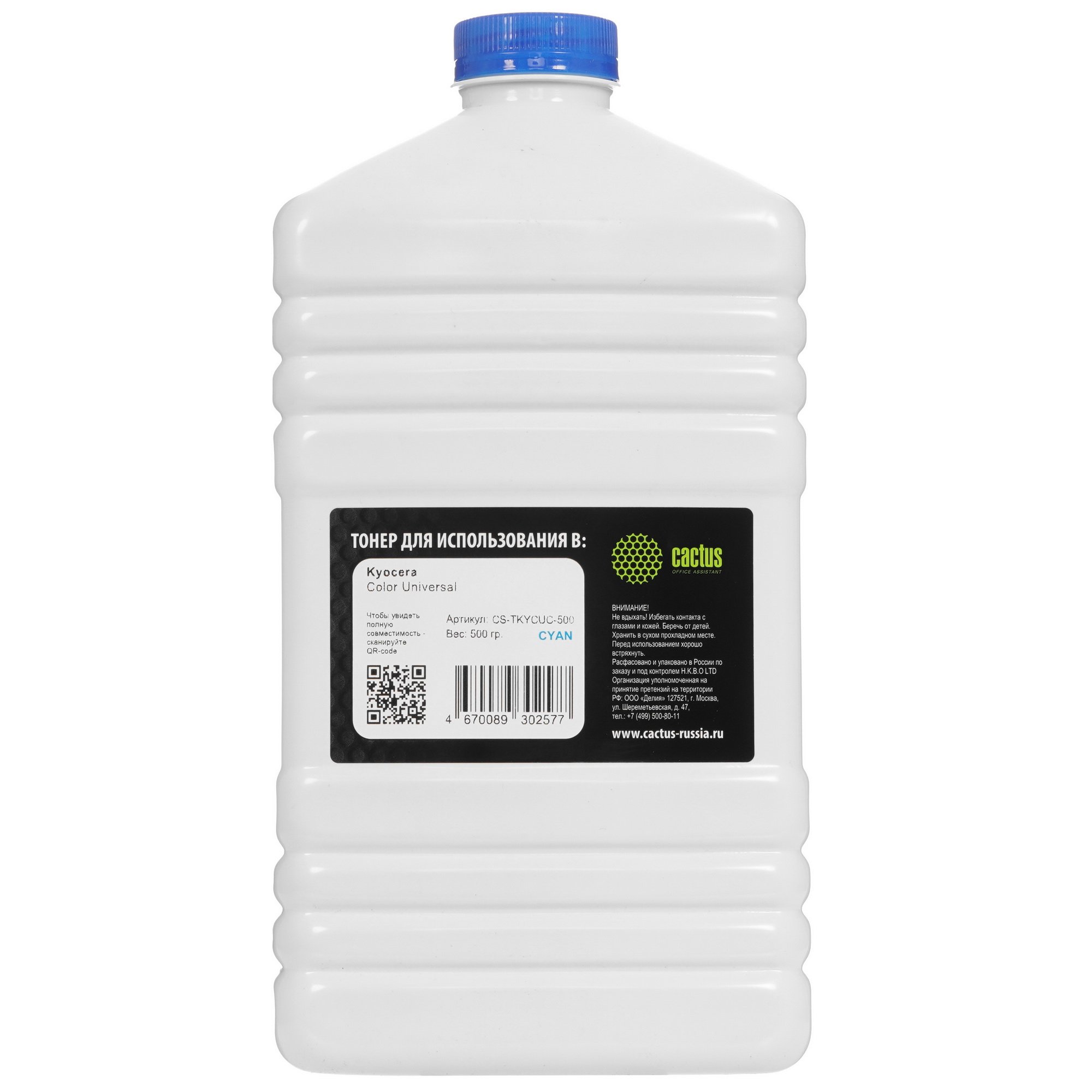 Тонер Cactus CS-TKYCUC-500 голубой флакон 500гр. для принтера Kyocera Color Universal