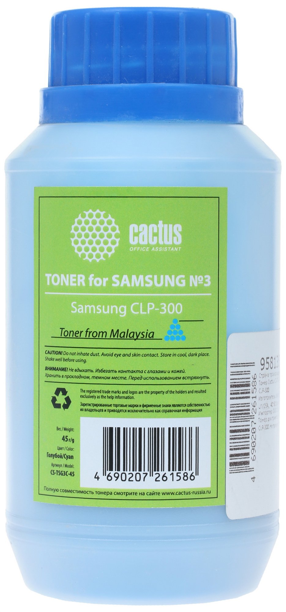 Тонер для принтера Cactus CS-TSG3C-45 голубой (флакон 45гр) Samsung CLP-300