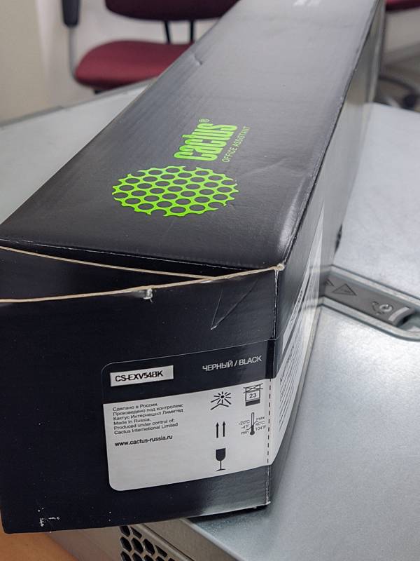 Cactus CS-EXV54BK обладает внушительным ресурсом до 15500 страниц при печати на листах A4 и их заполнении краской на 5%. Устройство требует бережной замены без рывков и резких движений. Неаккуратное обращение может привести к поломке пластиковых креплений корзины, появлению дефектов печати и неисправности принтера. Встроенный чип следит за отработанным ресурсом и оставшейся краской, выводит напоминание о замене тонера.
