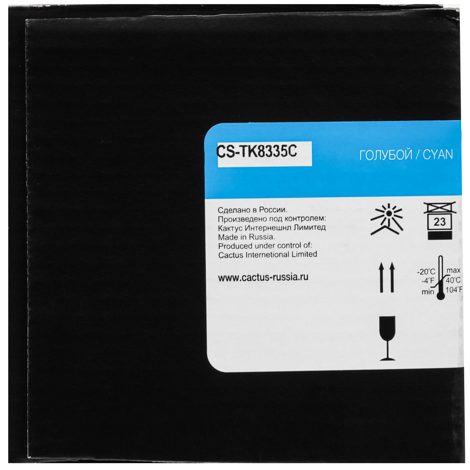 Cactus CS-TK8335C заправлен голубой порошковой краской. Тонер оставляет четкий и насыщенный оттиск на бумаге с мгновенным запеканием в печи принтера для устойчивости к стиранию. Устройство со стандартной емкостью обладает рабочим ресурсом в 15000 страниц при условии заполнения листов A4 краской на 5%. Модель дополнена встроенным чипом для контроля за количеством тонера, вывода предупреждения о блокировке и необходимости замены.