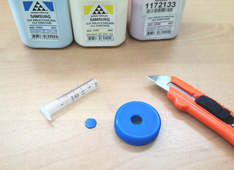 Тонер Samsung AQC-235C помещен в удобный флакон с широким горлышком, из которого порошок очень удобно засыпать в картридж, чтобы продолжить печать. Емкость флакона рассчитана на 45 грамм. Благодаря крышке, которая плотно закрывается, содержимое флакона оказывается защищенным от внешних воздействий: это солнечный свет, ветер, а также влага – факторы, которые могут пагубно повлиять на свойства тонера.