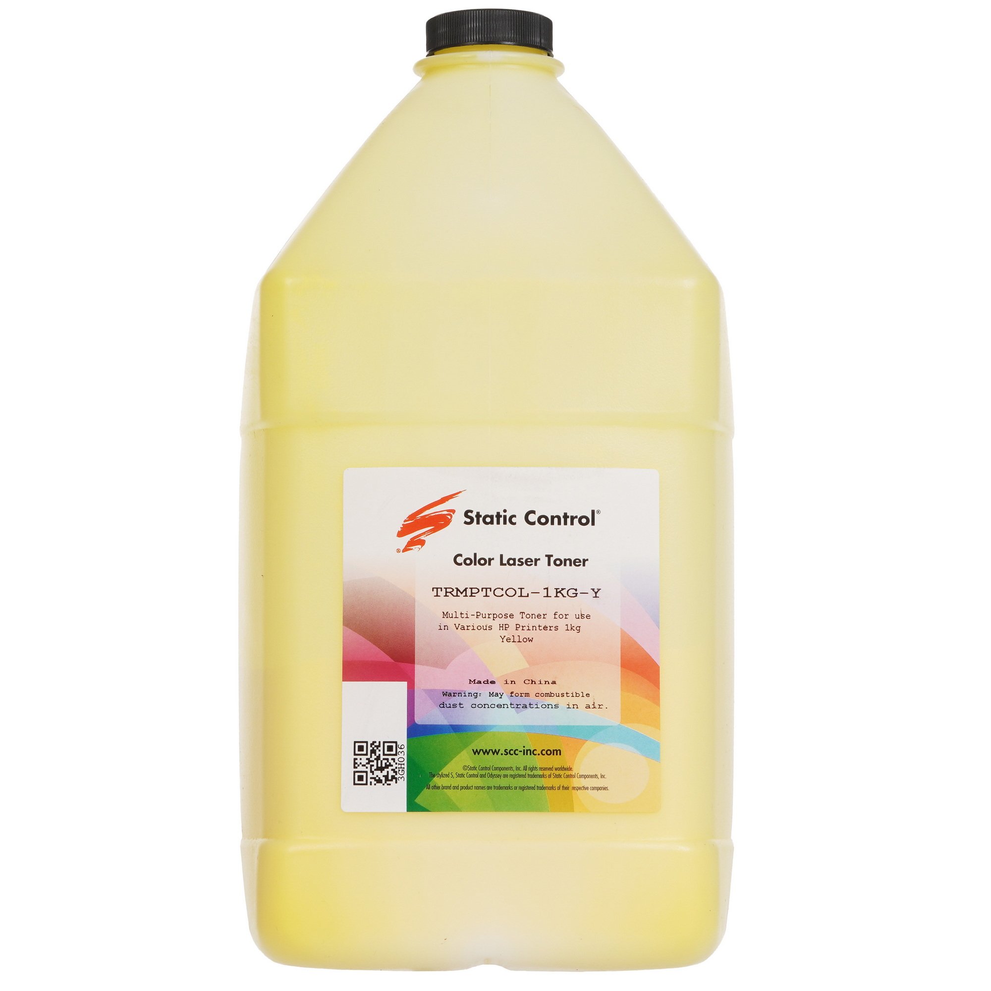 Тонер Static Control TRMPTCOL-1KG-Y совместим с оргтехникой Canon, HP, флакона весом 1000 г достаточно для печати до 2000-2500 листов формата А4.
