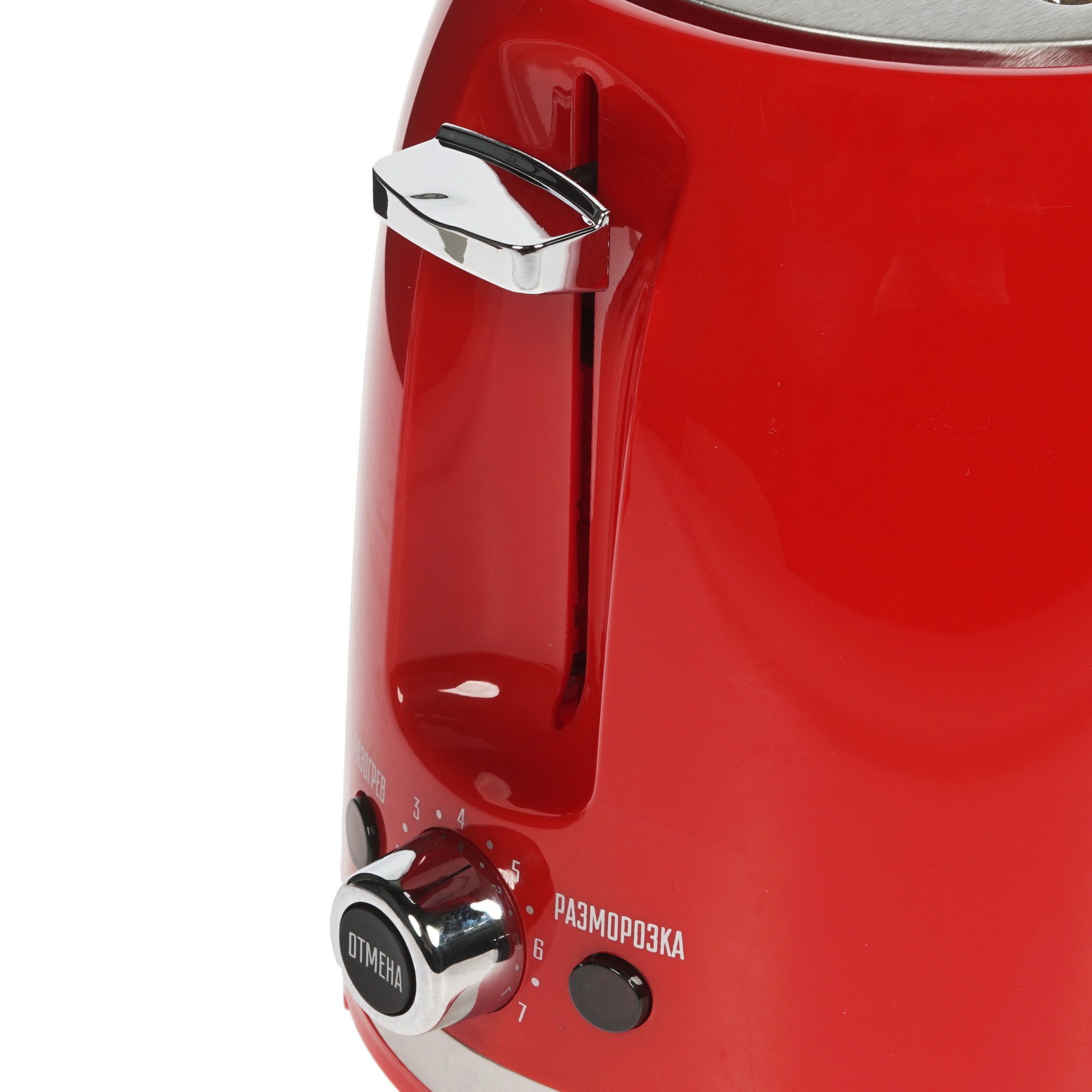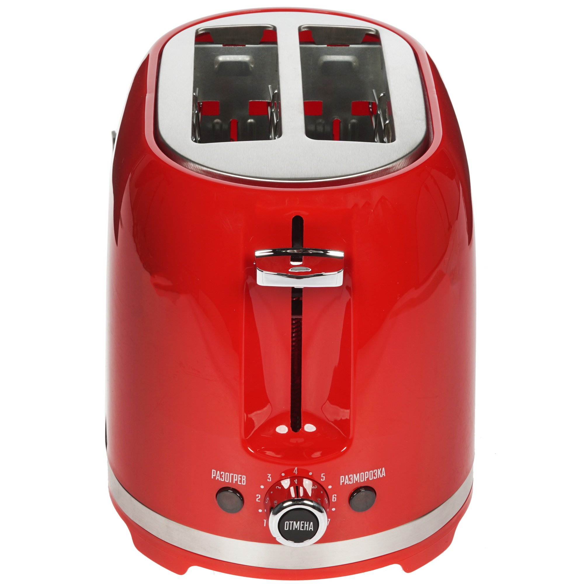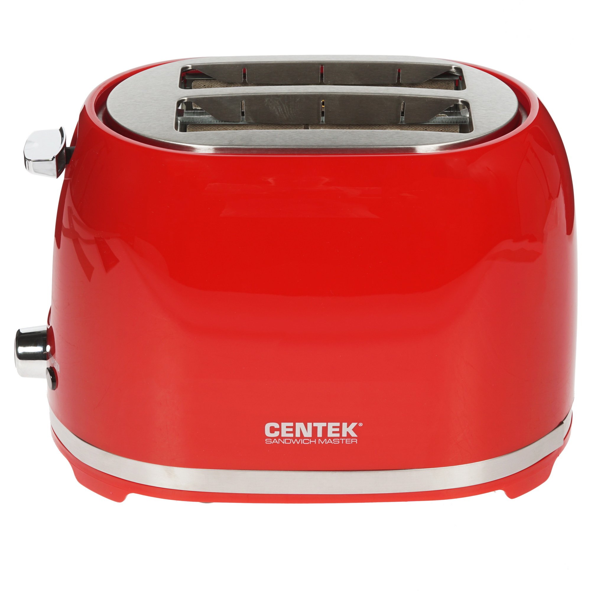 Тостер Centek СТ-1432 выполнен в красном корпусе с гладкой поверхностью и оборудован 2-мя отделениями. Функция автоматического центрирования позволяет готовить аппетитные тосты с равномерным обжариванием. Регулировать интенсивность поджаривания можно благодаря наличию 7 степеней прожаривания, управляемых поворотом переключателя. Данная модель также получила функции разогрева и размораживания хлебобулочных изделий. Технология экстра-подъема позволяет легко поднимать маленькие ломтики. На кнопках управления реализована LED-подсветка для повышения комфорта в использовании. Помимо этого, из особенностей Centek СТ-1432 отмечаются функция отмены и съемный поддон для крошек.