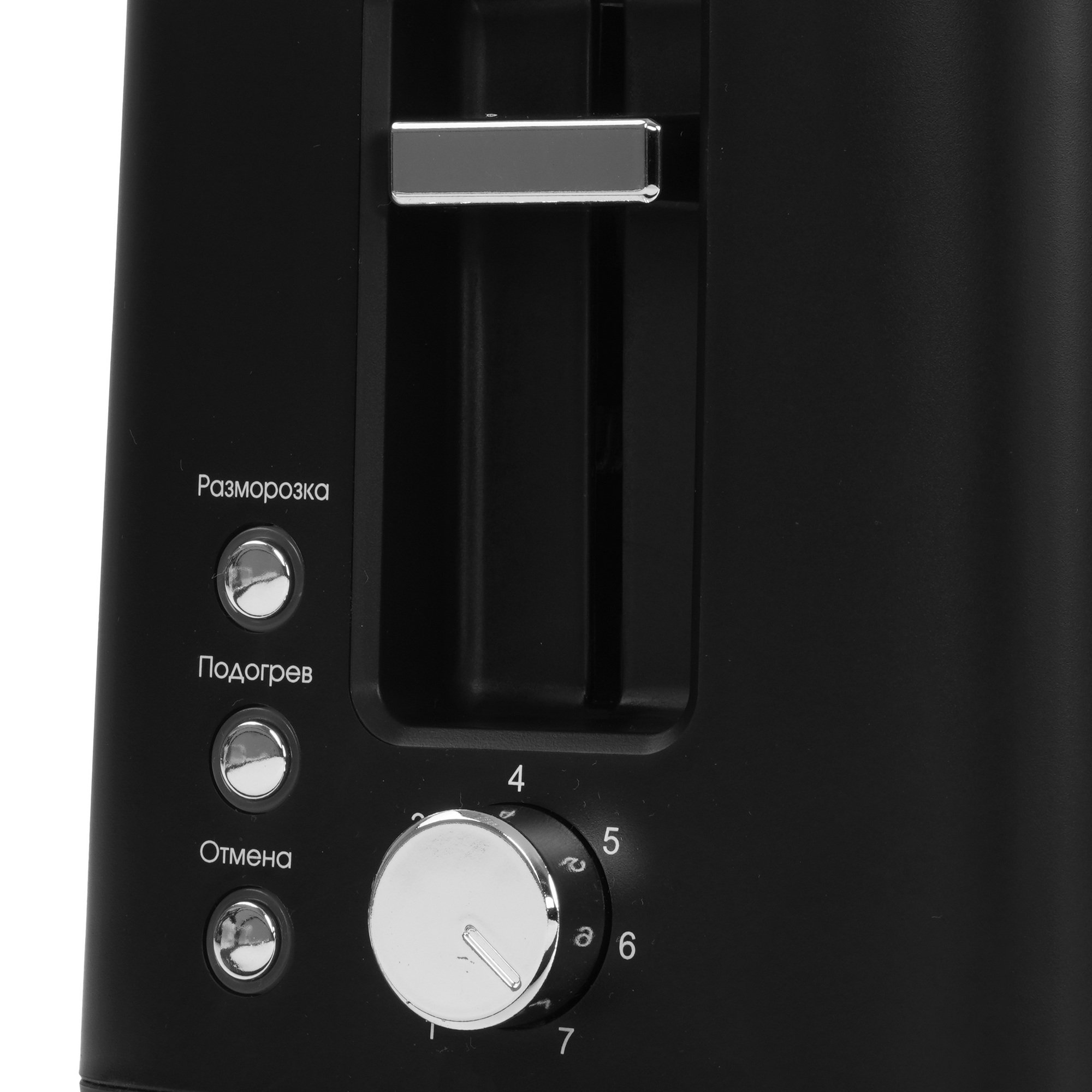 Тостер Endever Skyline ST-123 потребляет 800 Вт электроэнергии. На корпусе устройства есть специальный отдел для компактного хранения шнура. В отсеки для хлеба можно загружать кусочки размером 130х27 мм. У модели предусмотрено семь степеней прожарки - от легкого подсушивания до интенсивной золотистой корочки. Функция автоматического центрирования обеспечивает равномерный прогрев каждого кусочка и предотвращает подгорание краев. По готовности тосты автоматически поднимутся наверх. Также Endever Skyline ST-123 оснащен функцией разморозки хлеба. Опция подогрева позволяет разогревать уже готовые тосты, не пересушивая их. Для принудительной остановки работы устройства нужно нажать кнопку отмены на корпусе.