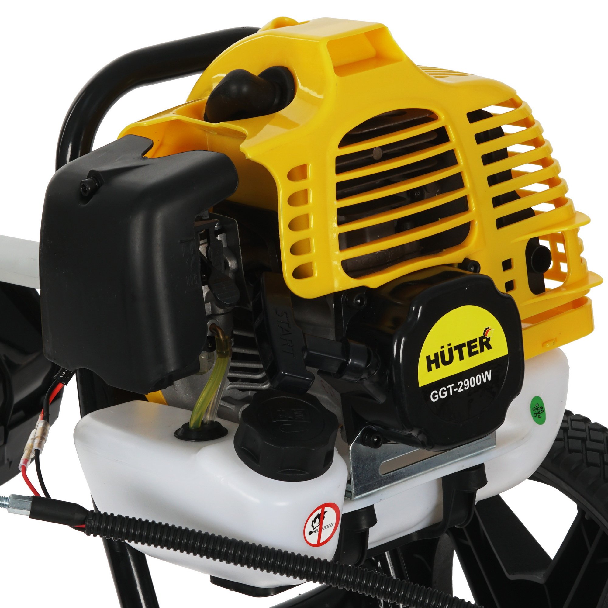 Праймер обеспечивает простой и стабильный запуск бензинового двигателя. Рукоятка обладает складной конструкцией и эргономичными накладками с элементами управления. Защитный кожух в нижней части триммера Huter GGT-2900W уберегает от разбрасывания травы, камней и других предметов.