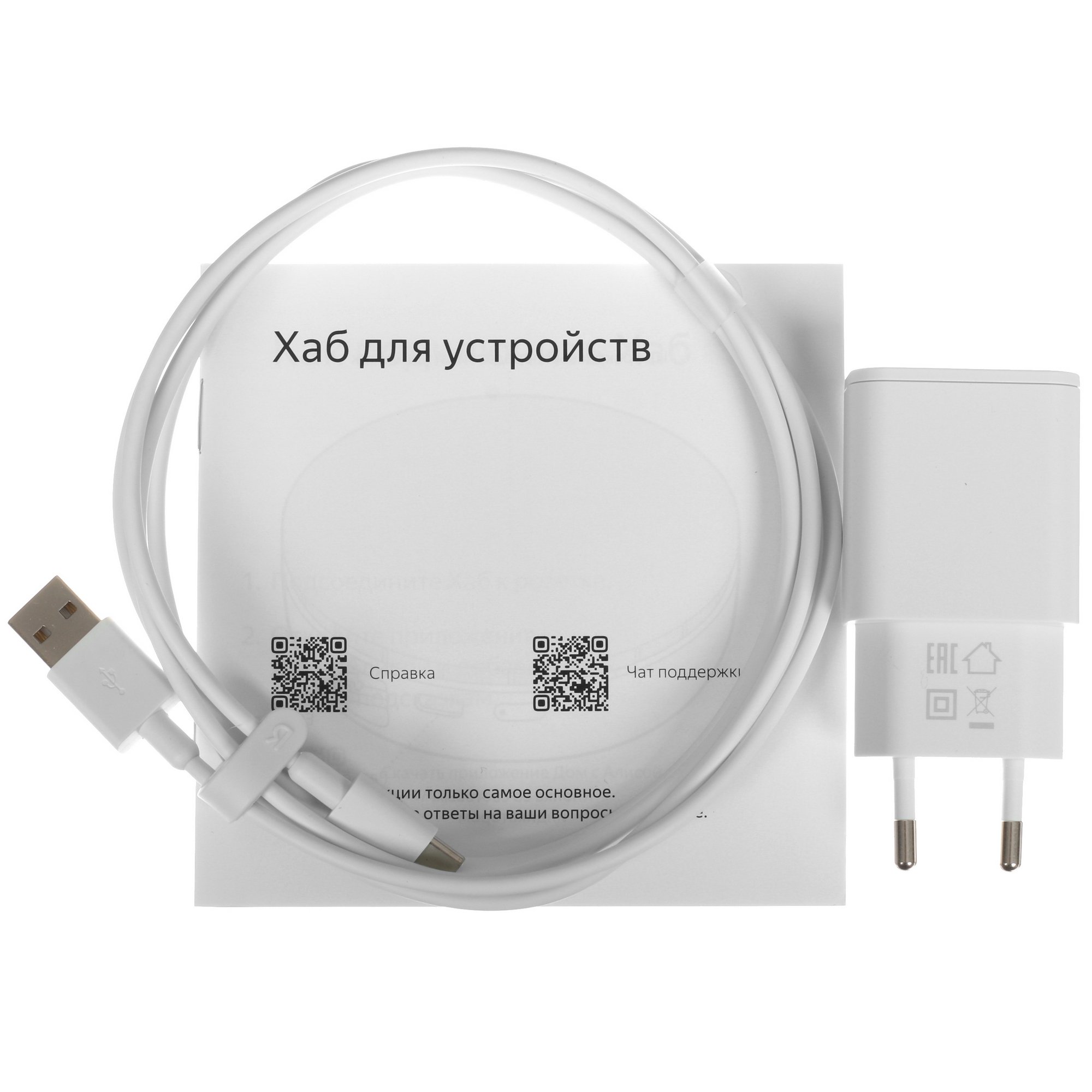 Центр управления умным домом Яндекс Hub YNDX-00510 позволяет объединить все устройства с голосовым ассистентом Алиса и обеспечивает максимально удобное взаимодействие между ними. То есть, он выполняет роль единой точки управления экосистемой Яндекс в доме. При подключении по беспроводной технологии Wi-Fi или ZigBee центр синхронизируется с осветительными приборами, колонками, телевизорами, чайниками, пылесосами и прочей бытовой техникой. Яндекс Hub YNDX-00510 поставляется в комплекте с сетевым адаптером подключения для организации питания.