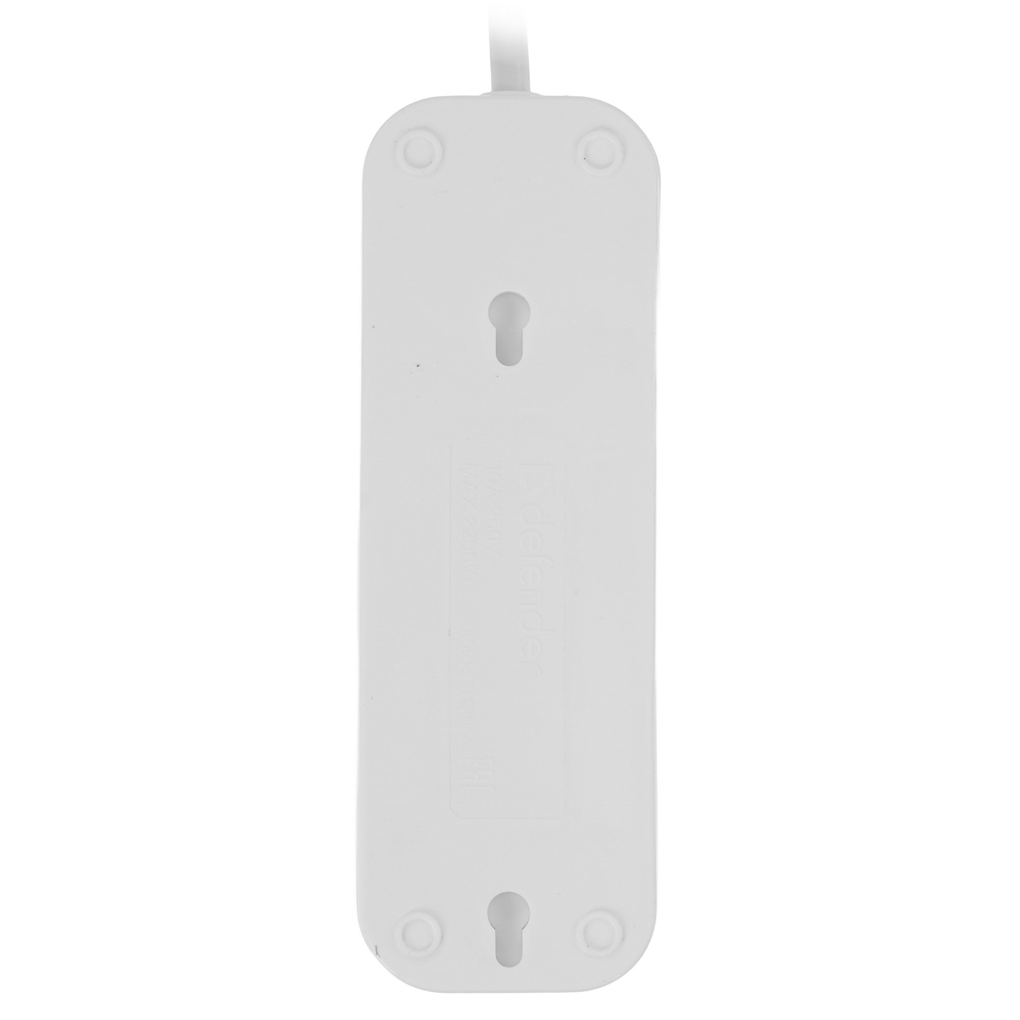 Удлинитель Defender B230 белого цвета в корпусе из негорючего пластика оснащен 3 розетками типа C без заземления для подключения компьютеров, бытовой техники, электроинструментов и других устройств. Предельная суммарная мощность нагрузки составляет 2200 Вт. Удлинитель можно крепить на стену.