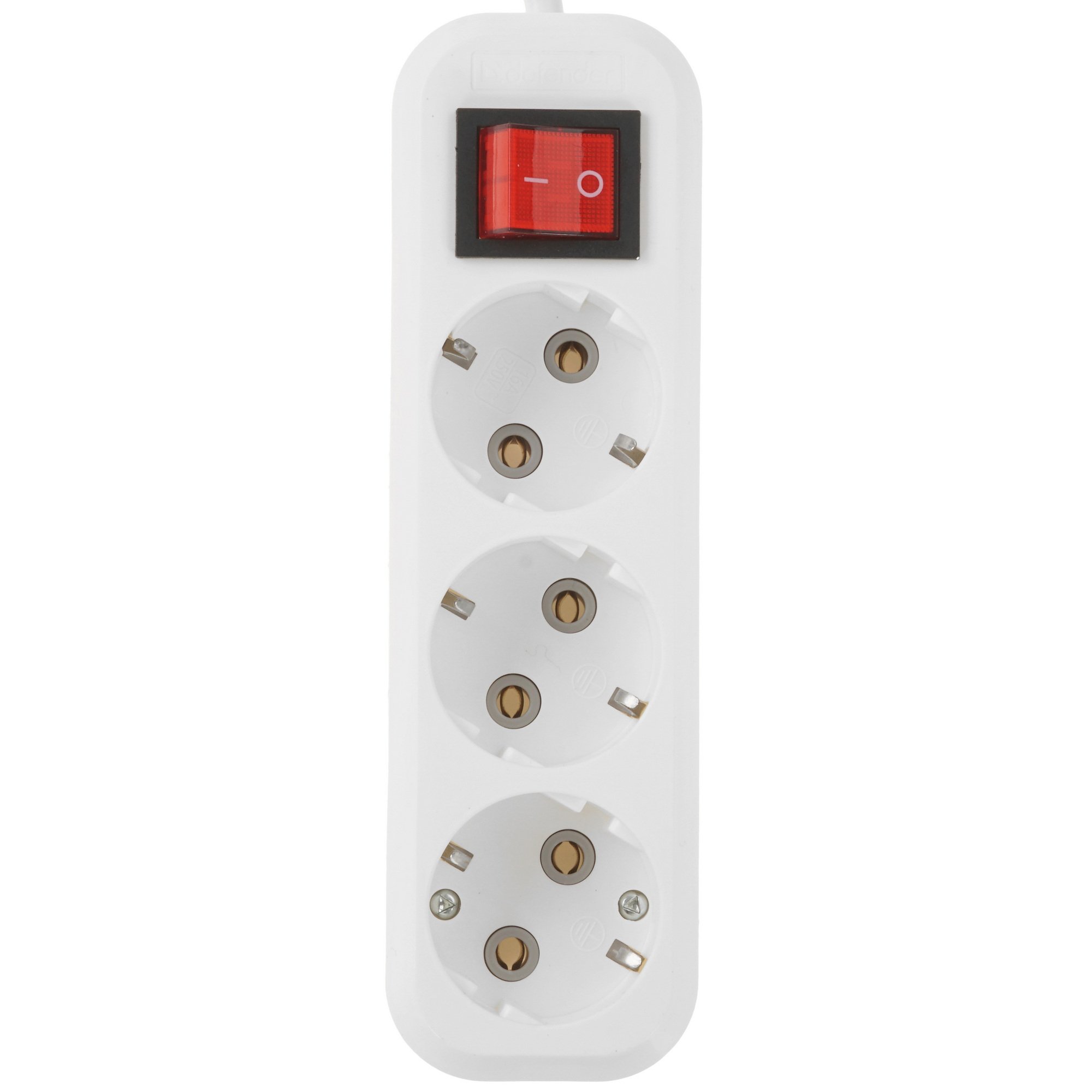 Удлинитель Defender L330 белого цвета в корпусе из негорючего пластика оснащен 3 розетками типа F с заземлением и общим выключателем для подключения компьютеров, бытовой техники, электроинструментов и других устройств. Предельная суммарная мощность нагрузки составляет 3500 Вт. Удлинитель можно крепить на стену.
