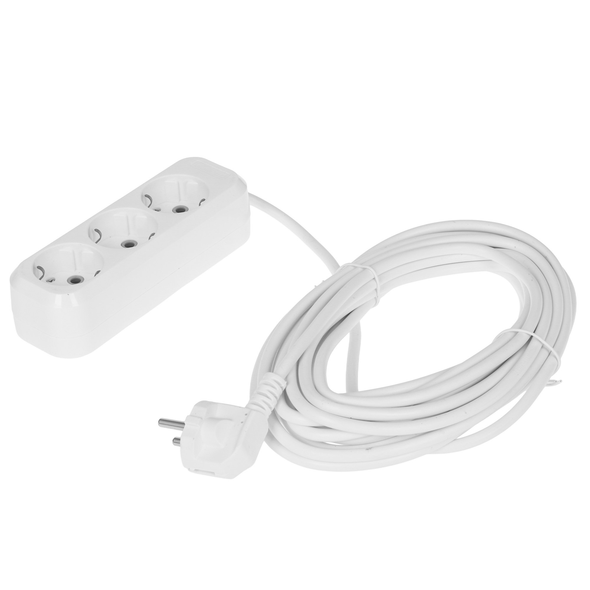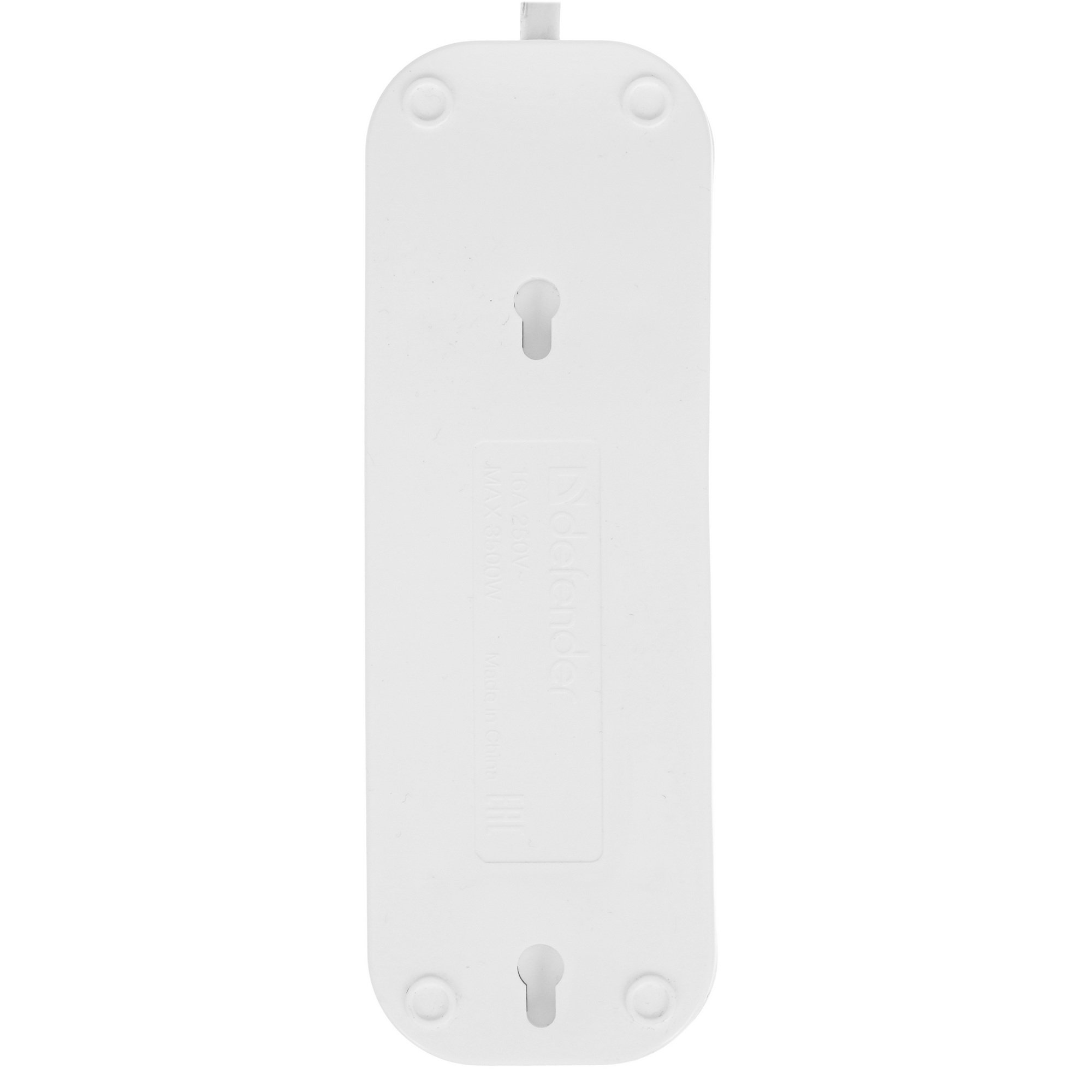 Удлинитель Defender R330 белого цвета в корпусе из негорючего пластика оснащен 3 розетками типа F с заземлением для подключения компьютеров, бытовой техники, электроинструментов и других устройств. Предельная суммарная мощность нагрузки составляет 3500 Вт. Удлинитель можно крепить на стену.