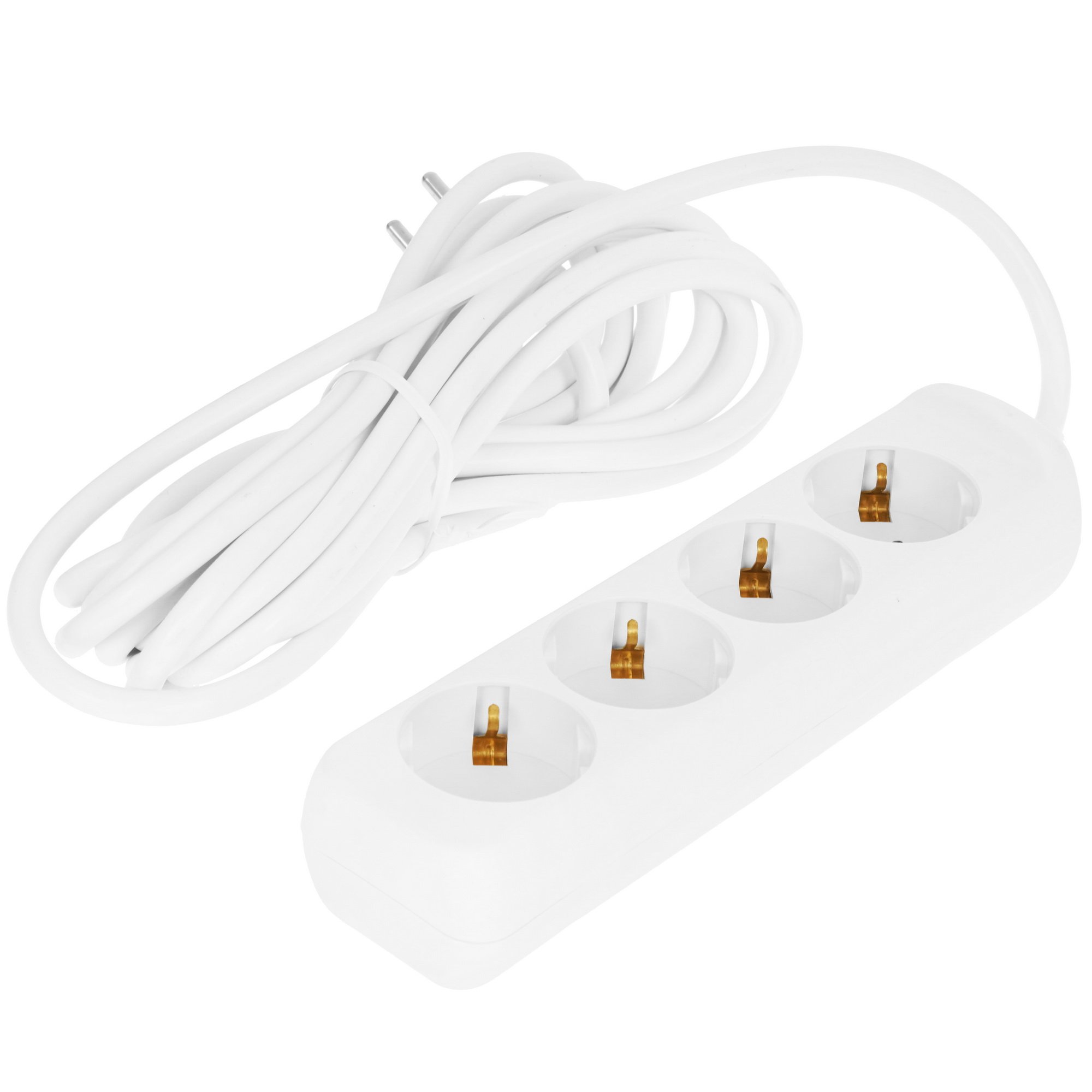 Удлинитель Эра U-4e-5m-3x1 белого цвета длиной 3 м предназначен для питания электроприборов. Модель оснащена четырьмя евророзетками Тип F с заземлением, с помощью которых можно подключать к электросети несколько устройств суммарной мощностью 3500 Вт.