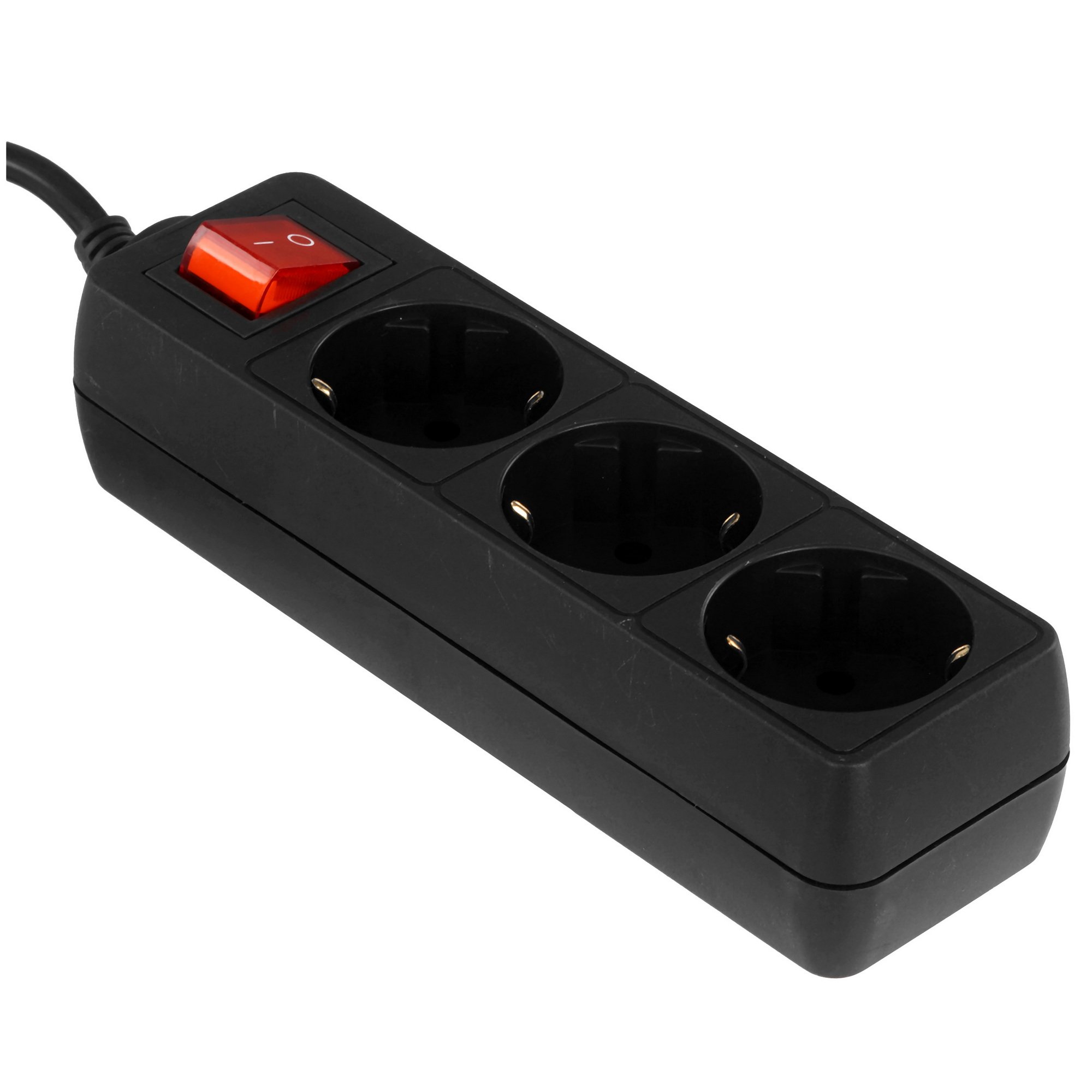 Черный сетевой удлинитель Perfeo POWERMATE PF-PM-3/1.8-B оснащен тремя выходными розетками евротипа F и кабелем длиной 1,8 м. Каждая розетка имеет заземление, а выключатель для них общий и представлен в виде кнопки на корпусе со световым индикатором. С его помощью можно отключать устройства от сети, не вытаскивая вилки из розеток.