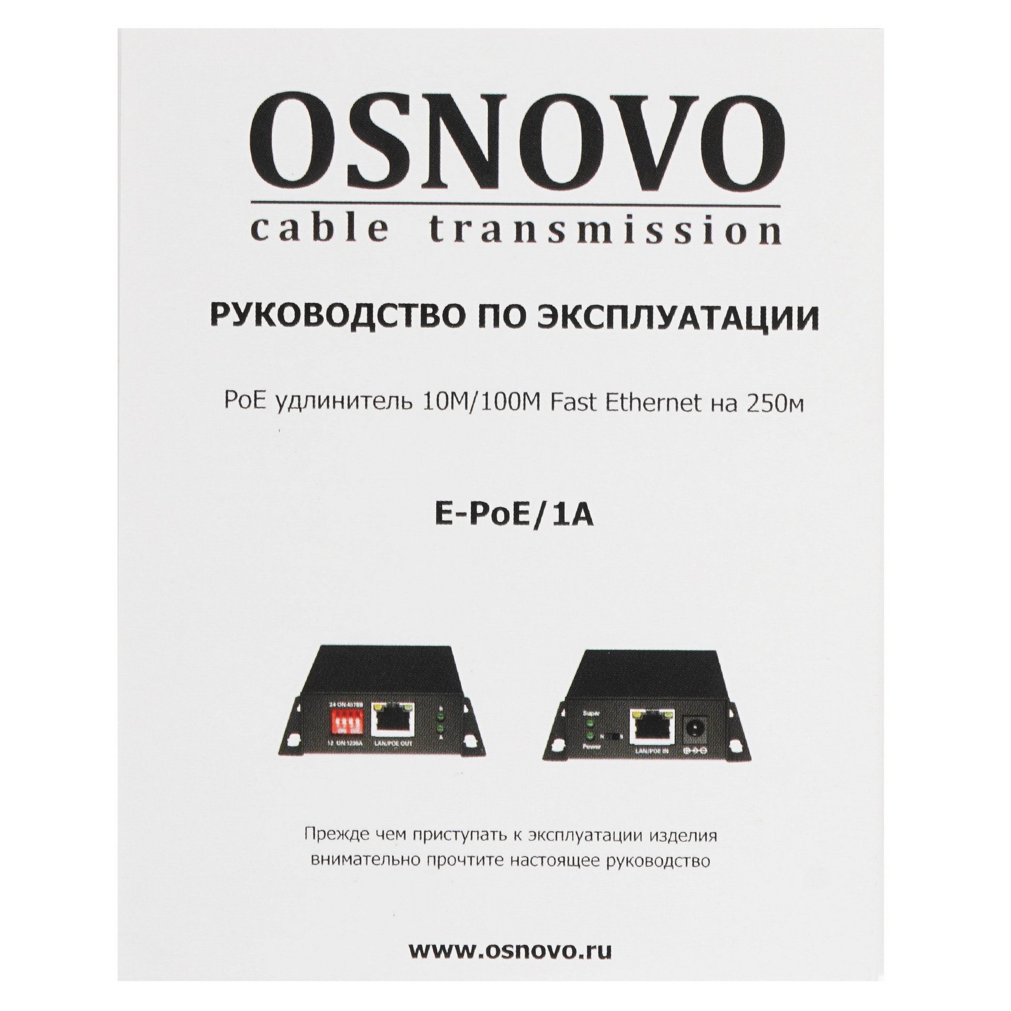 PoE удлинитель Osnovo E-PoE/1A 10M/100M Fast Ethernet на 400м (до 30W)