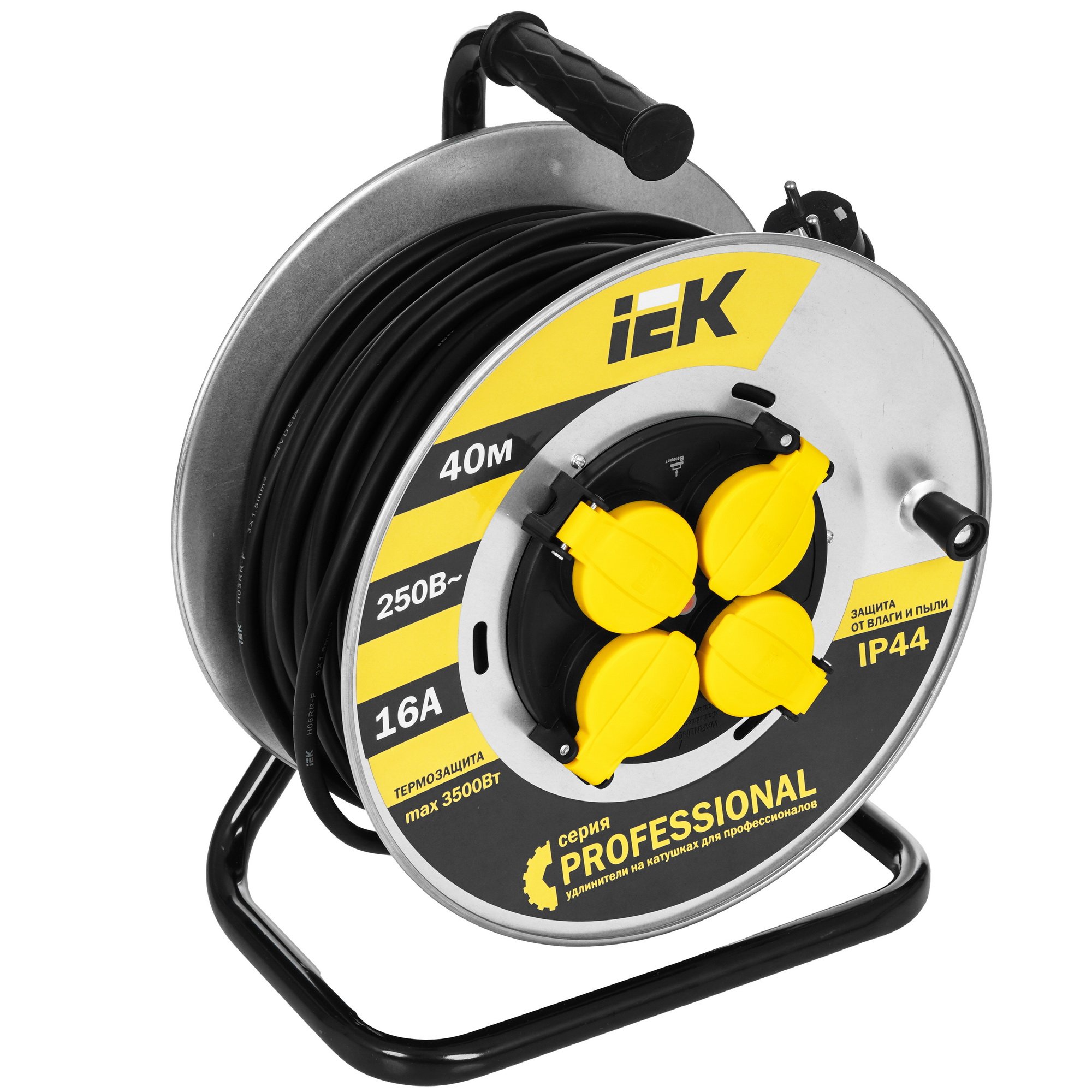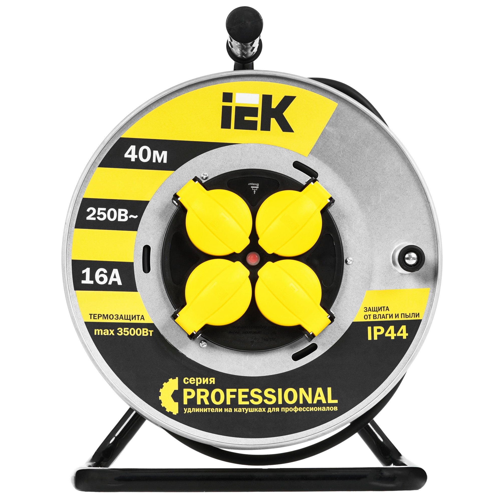 Катушка УК40 Iek WKP16-16-04-40-44 на мет с т/з 4 места 2 Р + P Е /40м КГ 3х1,5мм2 IP44 "Professional"