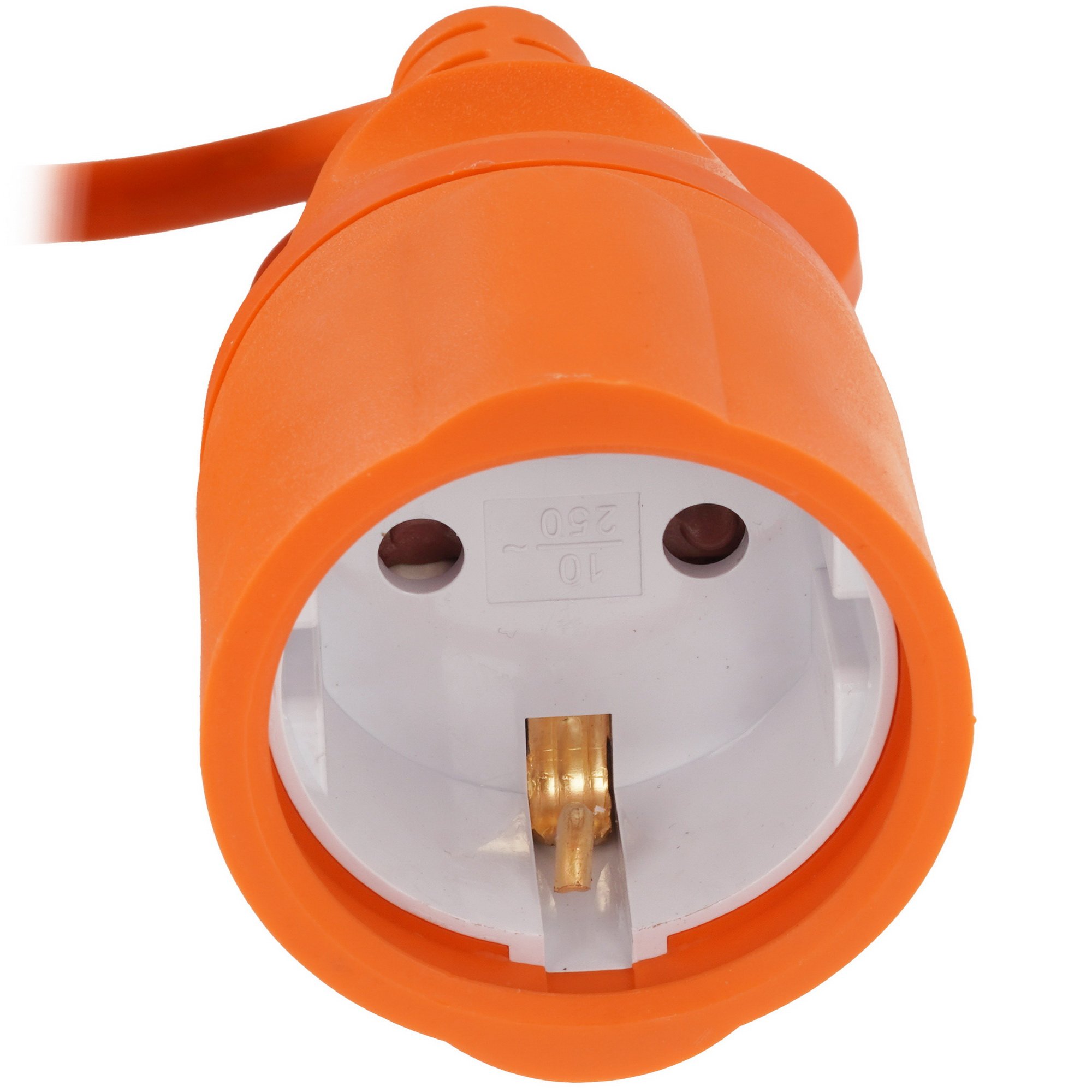 Удлинитель-шнур незаменим на даче, в гараже, а также при строительных работах. Яркий цвет позволяет легко заметить кабель в траве и на сложных рельефах местности. Удлинитель имеет ряд преимуществ: cтепень защиты IP44 позволяет использовать удлинители вне помещений, двойная изоляция провода выдерживает многочисленные перегибы, защищает кабель от пробоя и человека от поражения током, прочная литая круглая вилка, розетка обеспечивает плотное соединение с вилкой.