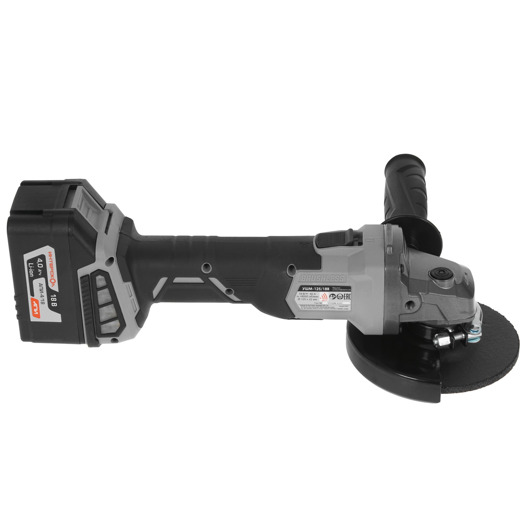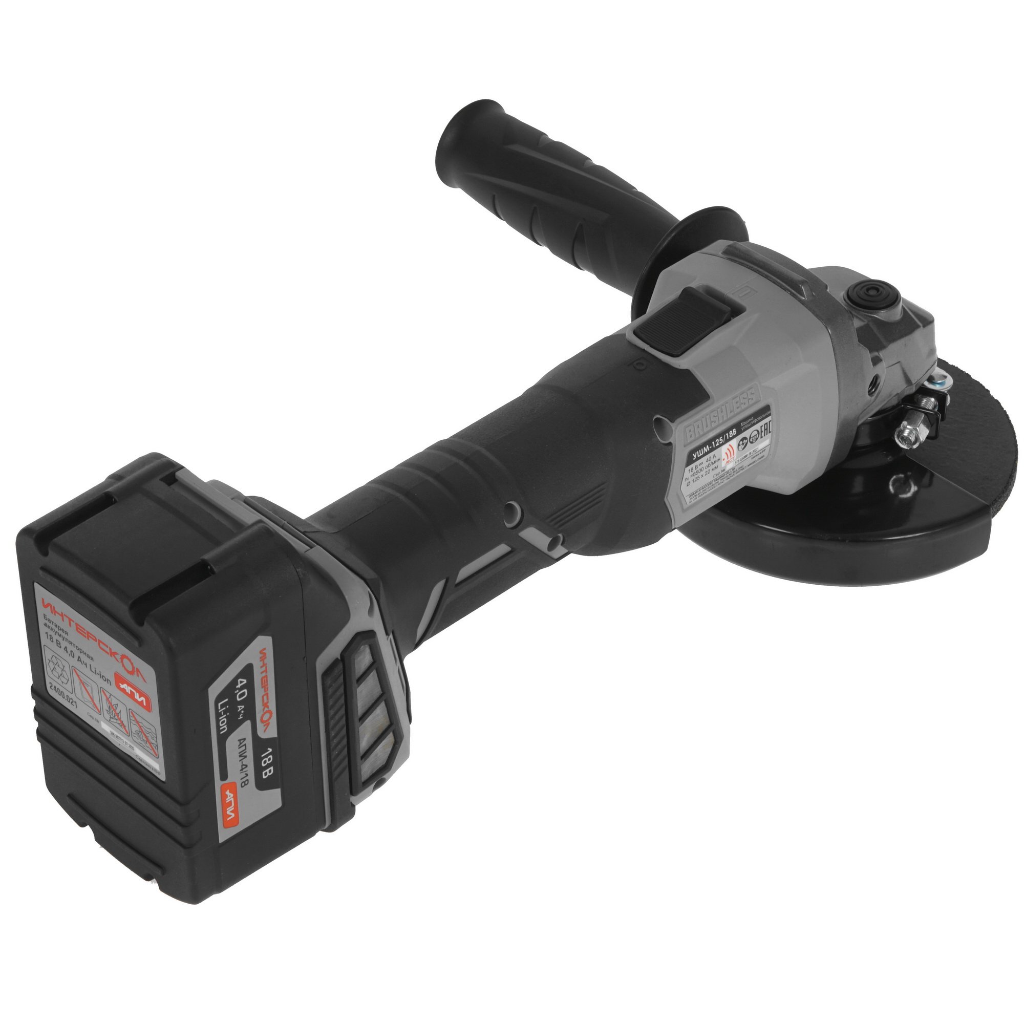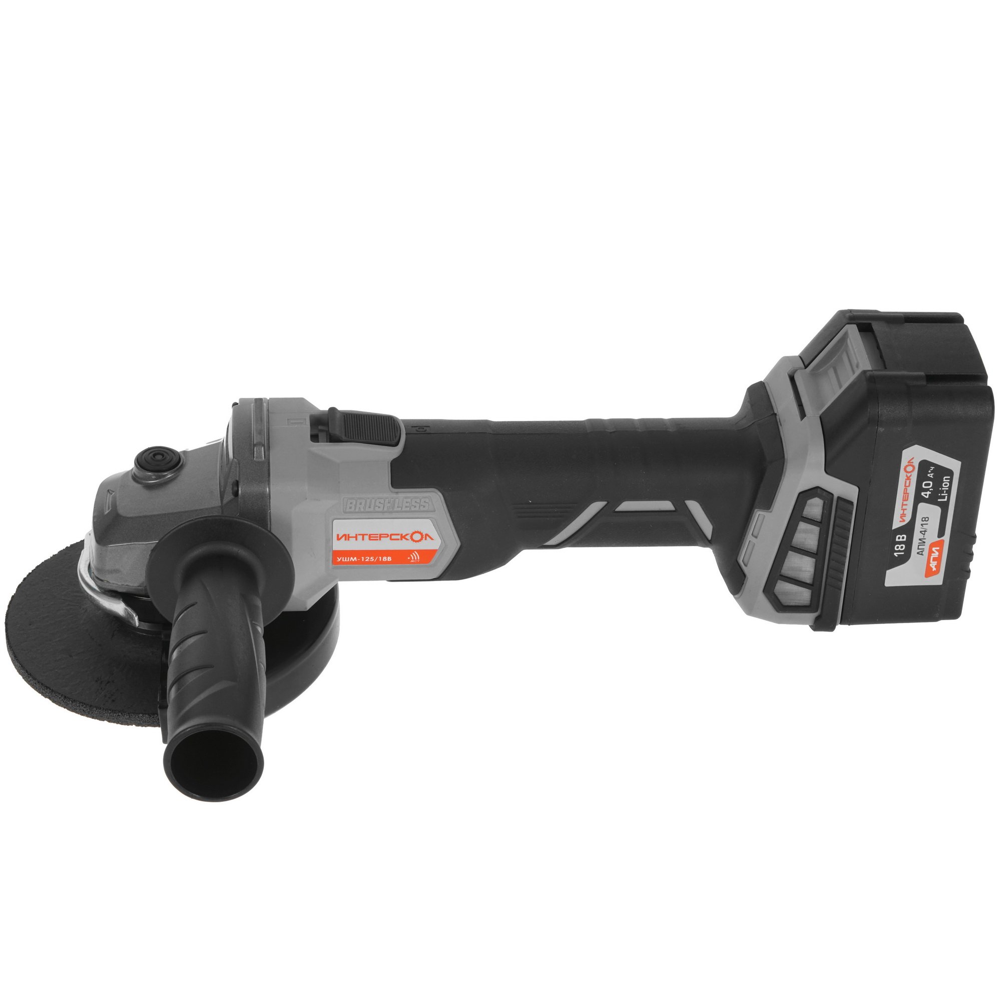 Угловая шлифовальная машина аккумуляторная ИНТЕРСКОЛ УШМ-125/18В Li-ion АПИ [578.4.1.70] кейс, 1 аккум. 4А·ч, ЗУ