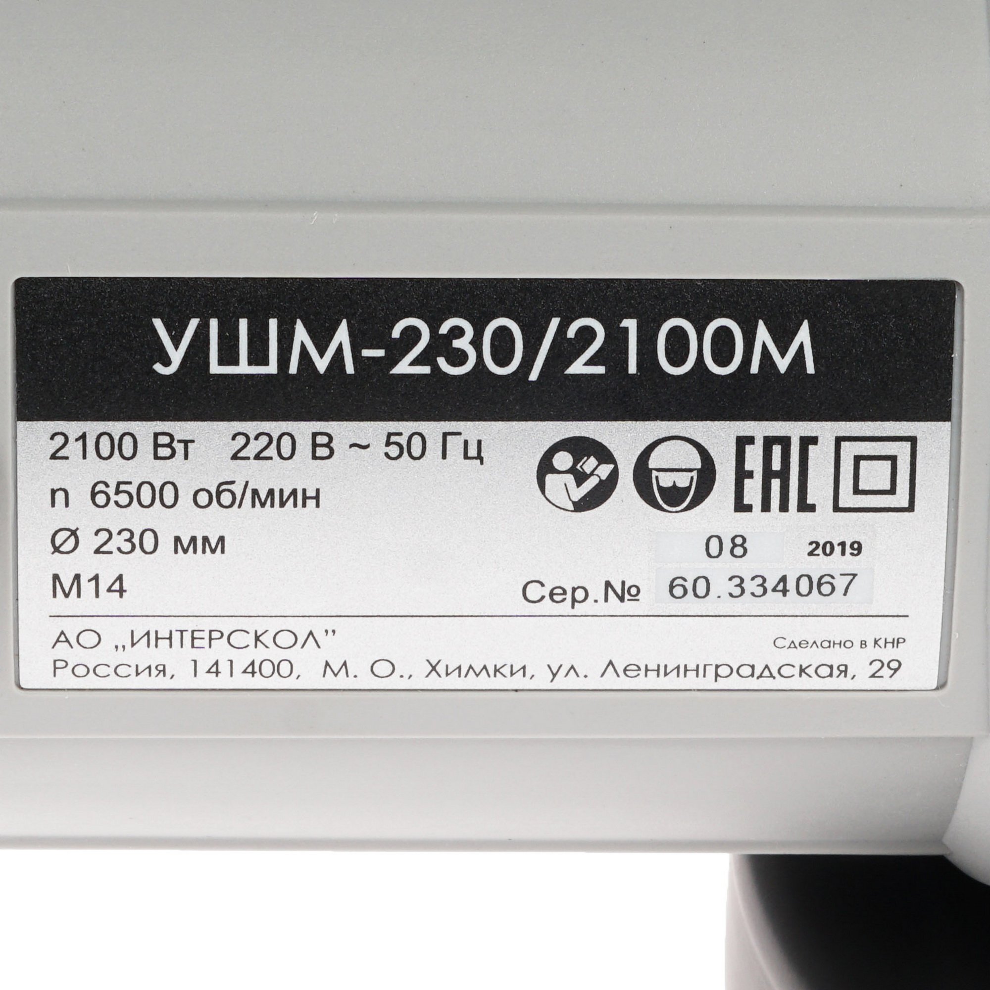 Угловая шлифовальная машина Интерскол УШМ-230/2100М 2100Вт 6500об/мин рез.шпин.:M14 d=230мм