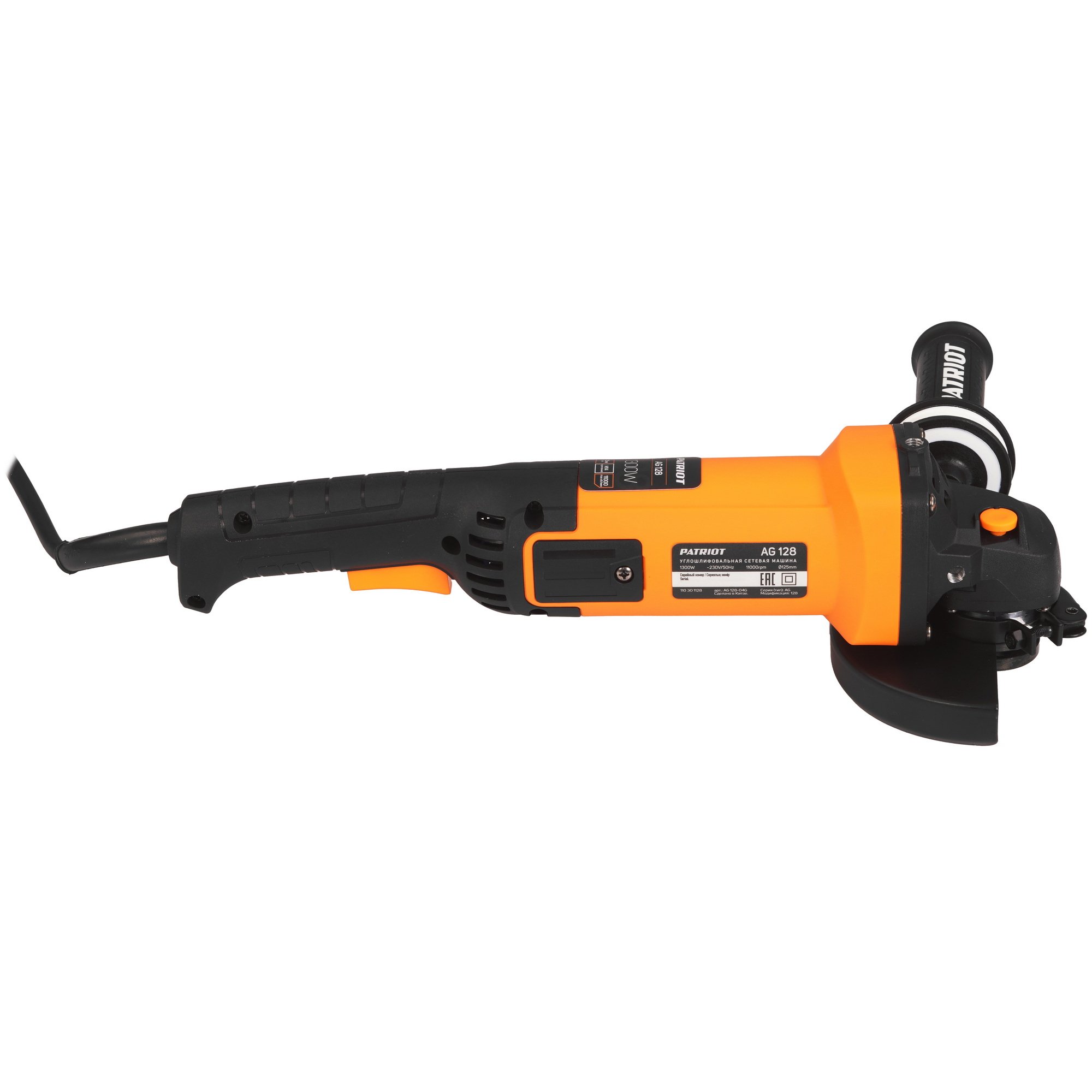 Угловая шлифовальная машина (УШМ) PATRIOT AG 128, двуручная, пылезащищенная. 1300Вт, Диск 125 мм