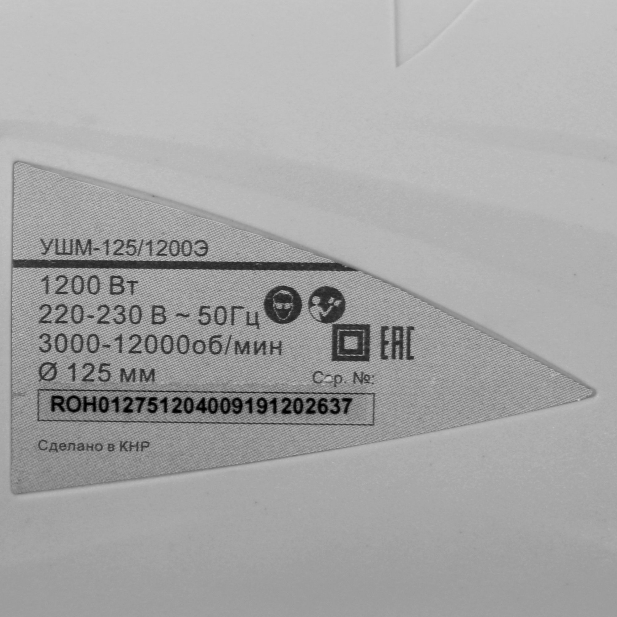 Угловая шлифовальная машина Ресанта УШМ-125/1200Э 1200Вт 12000об/мин рез.шпин.:M14 d=125мм