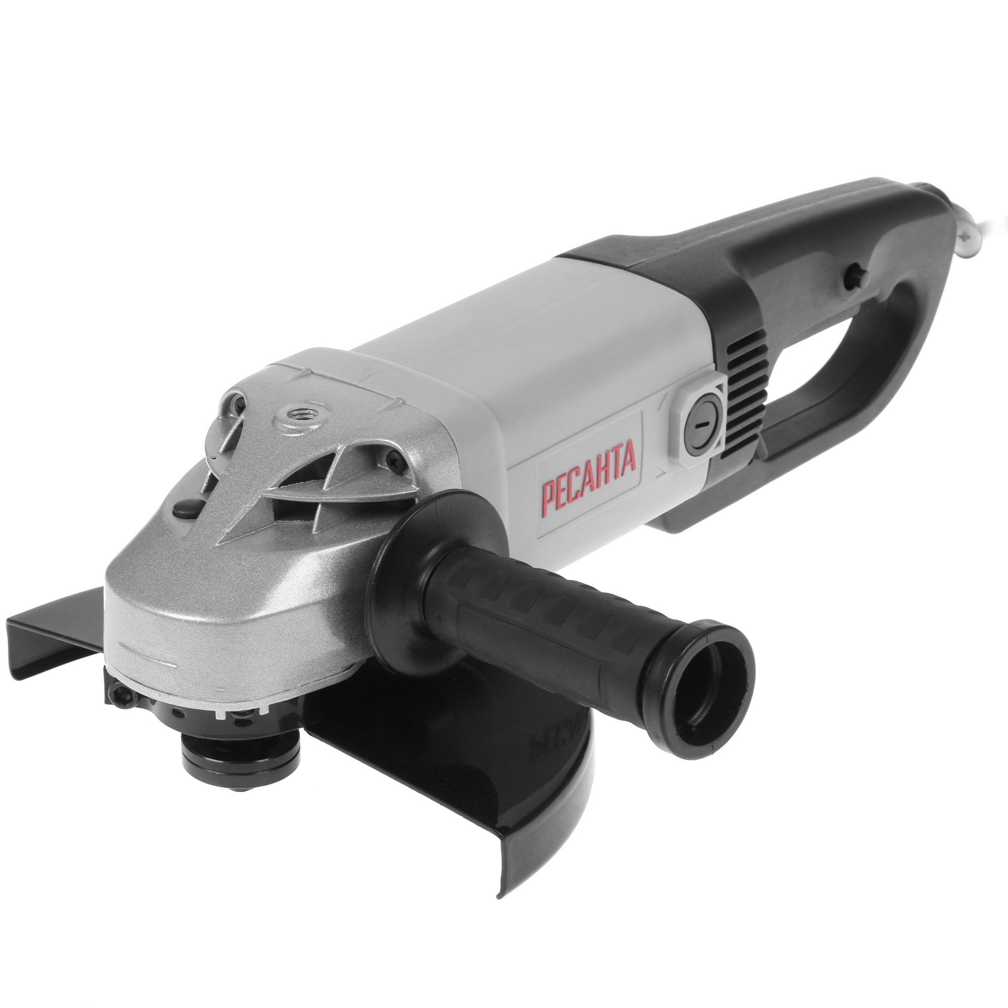 Благодаря вентиляционным отверстиям на корпусе снижается вероятность перегрева рабочего механизма. Кнопка блокировки шпинделя обеспечивает быструю и безопасную смену оснастки. Конструкция с двумя рукоятками гарантирует комфортное удержание инструмента. Дополнительная боковая рукоятка фиксируется в трех положениях с шагом 90 градусов для повышения удобства выполнения задач. В комплекте с Ресанта УШМ-230/2300 поставляются запасные угольные щетки, ключ смены диска и рукоятка.