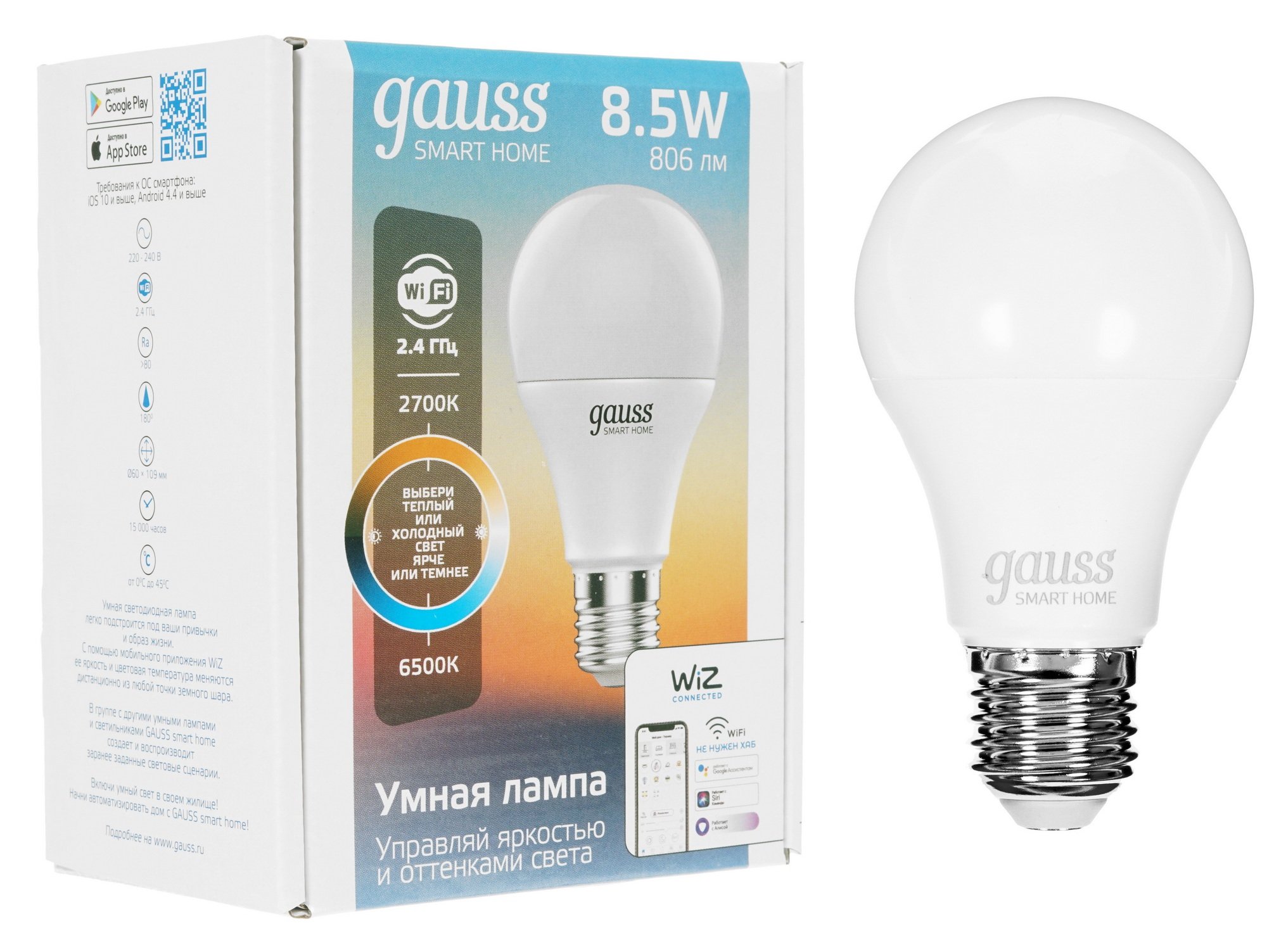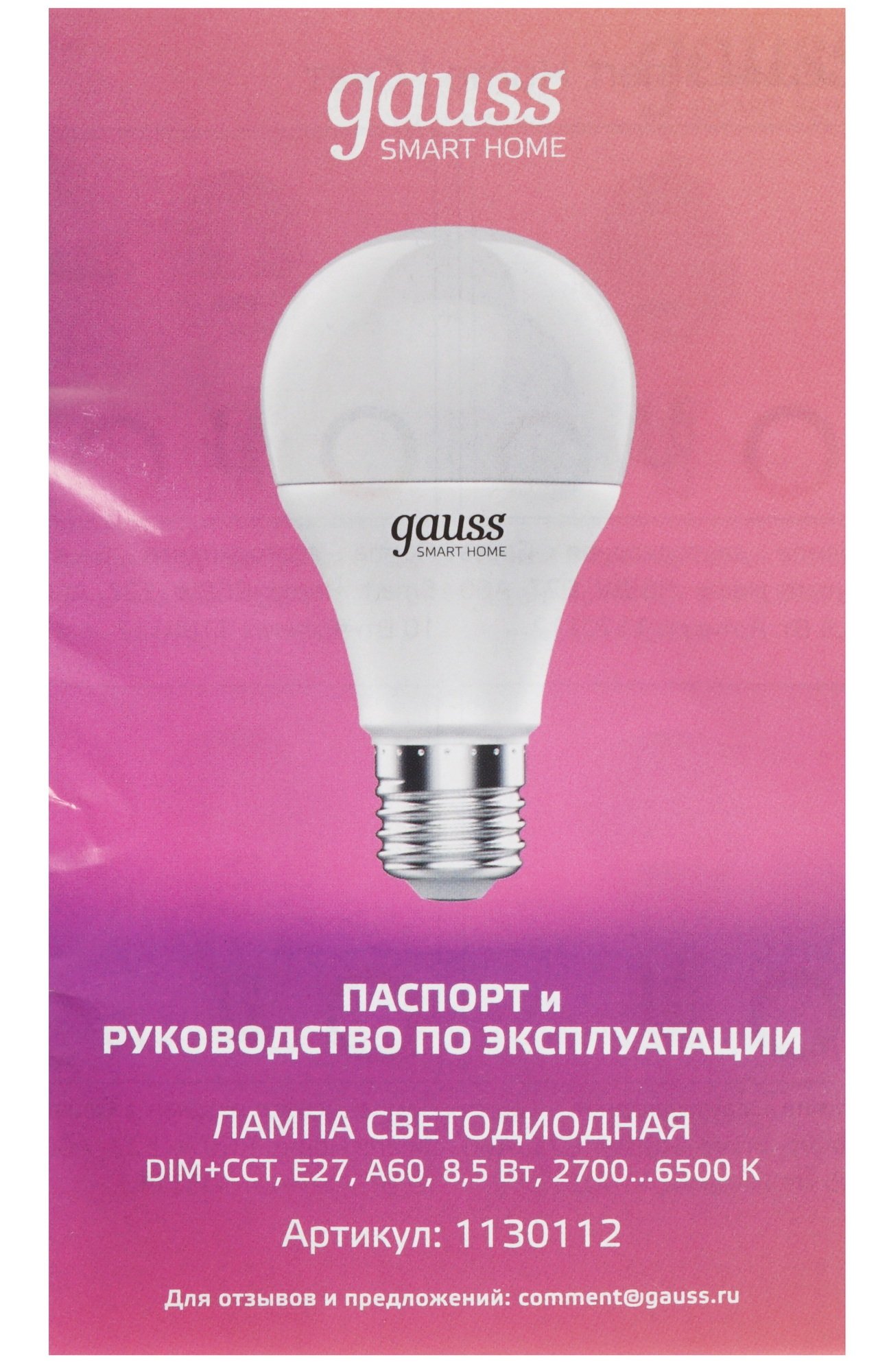 Лампа Светодиодная Gauss Smart Home DIM+CCT E27 A60 8.5 Вт 1/10/100