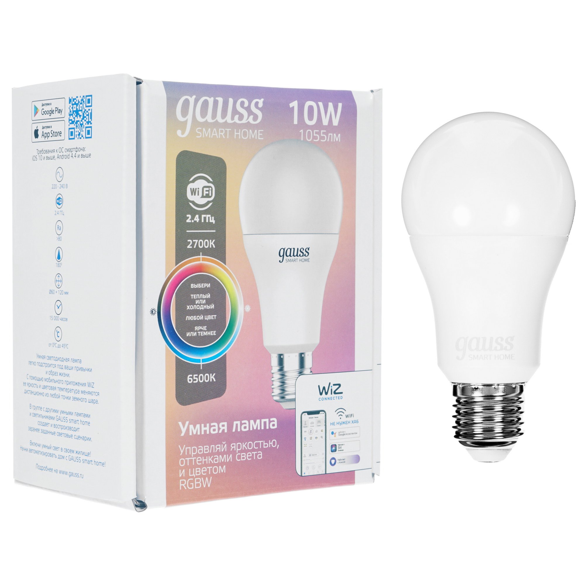 Лампа Светодиодная Gauss Smart Home RGbW E27 A60 10 Вт 2700-6500K 1/10/100