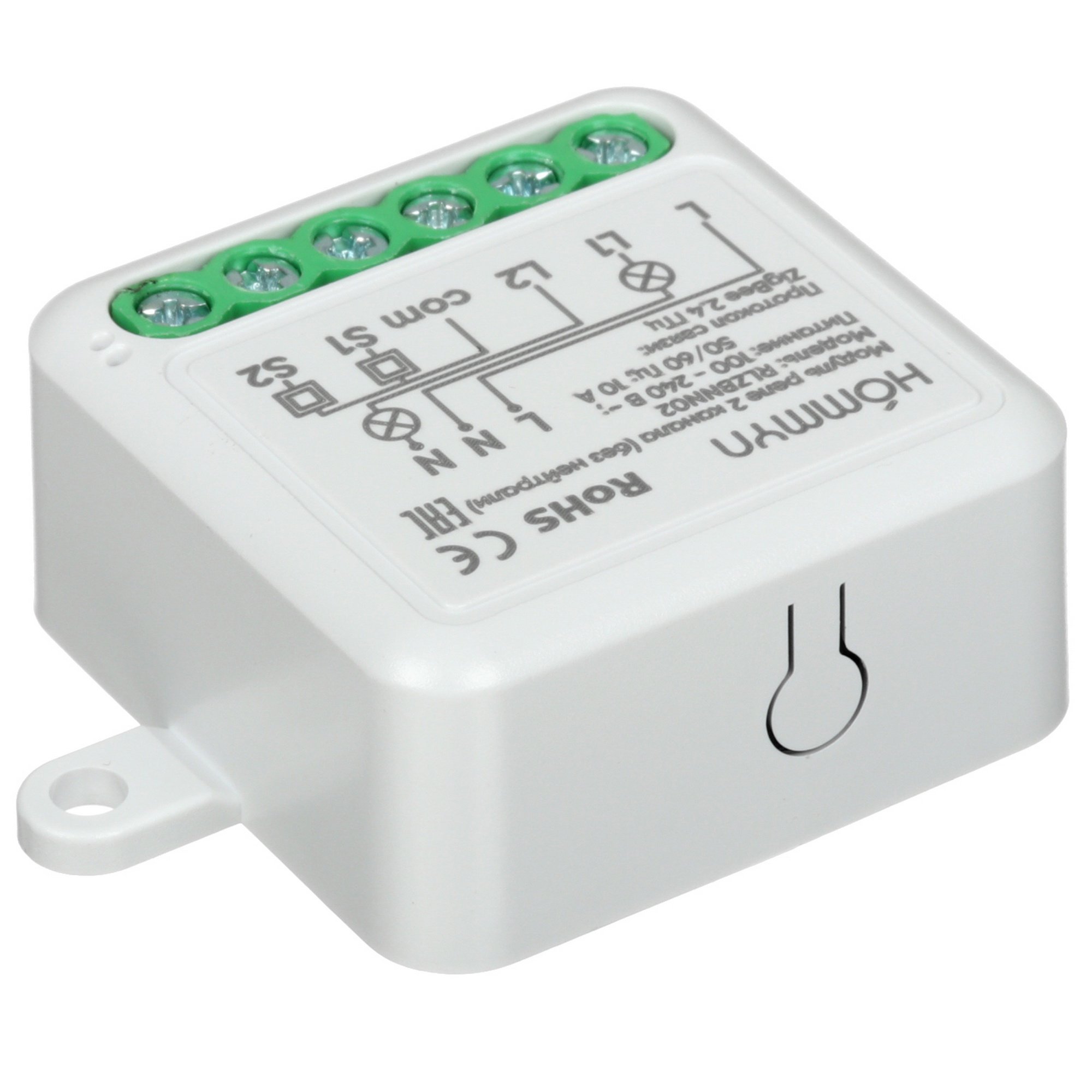 Включает и выключает освещение и подключенный к нему бытовой прибор по одному клику или по расписанию в приложении HOMMYN. Компактные размеры позволяют спрятать реле в стандартную круглую монтажную коробку в стене под обычный «неумный» настенный выключатель или розетку.