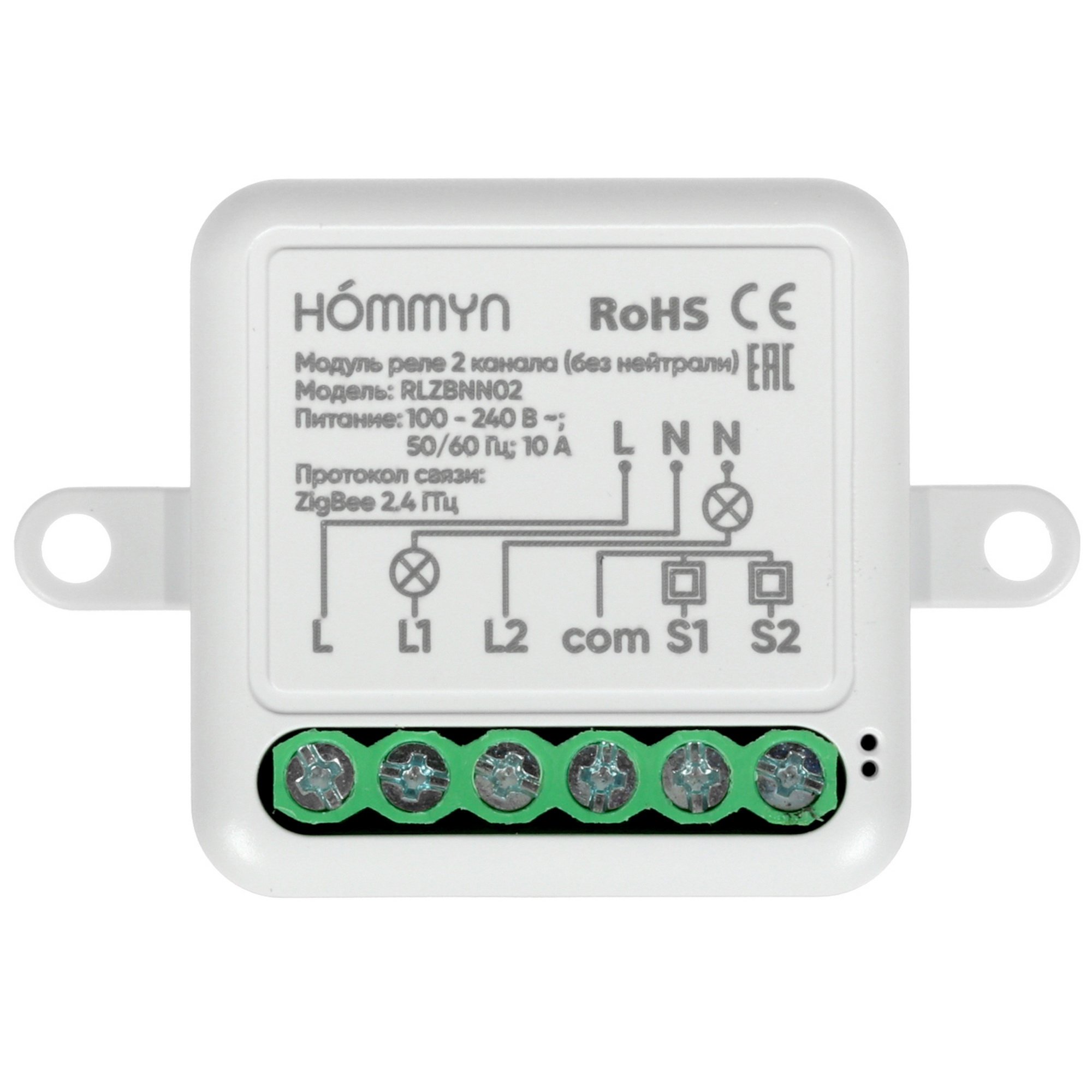 Модуль реле HOMMYN zigbee 2 канала (без нейтрали) RLZBNN02