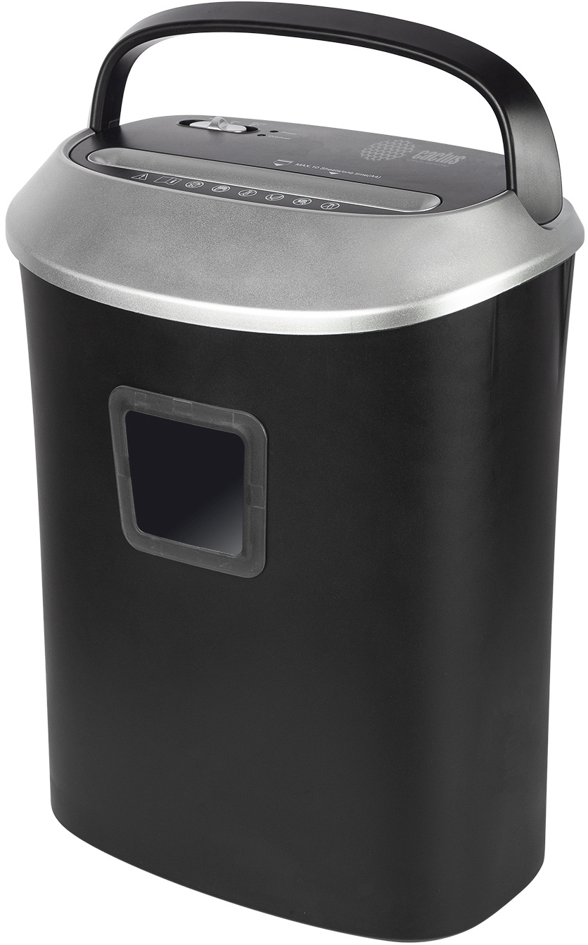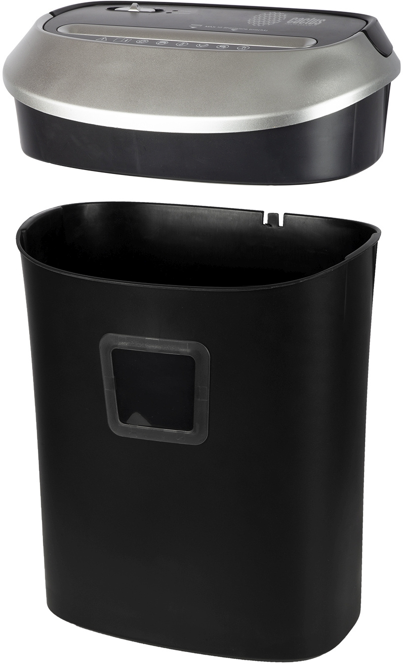 Шредер Cactus CS-SH-P6 черный, тип резки фрагменты размером 4х40 мм. Уровень секретности DIN 66399 для бумаги P-4.