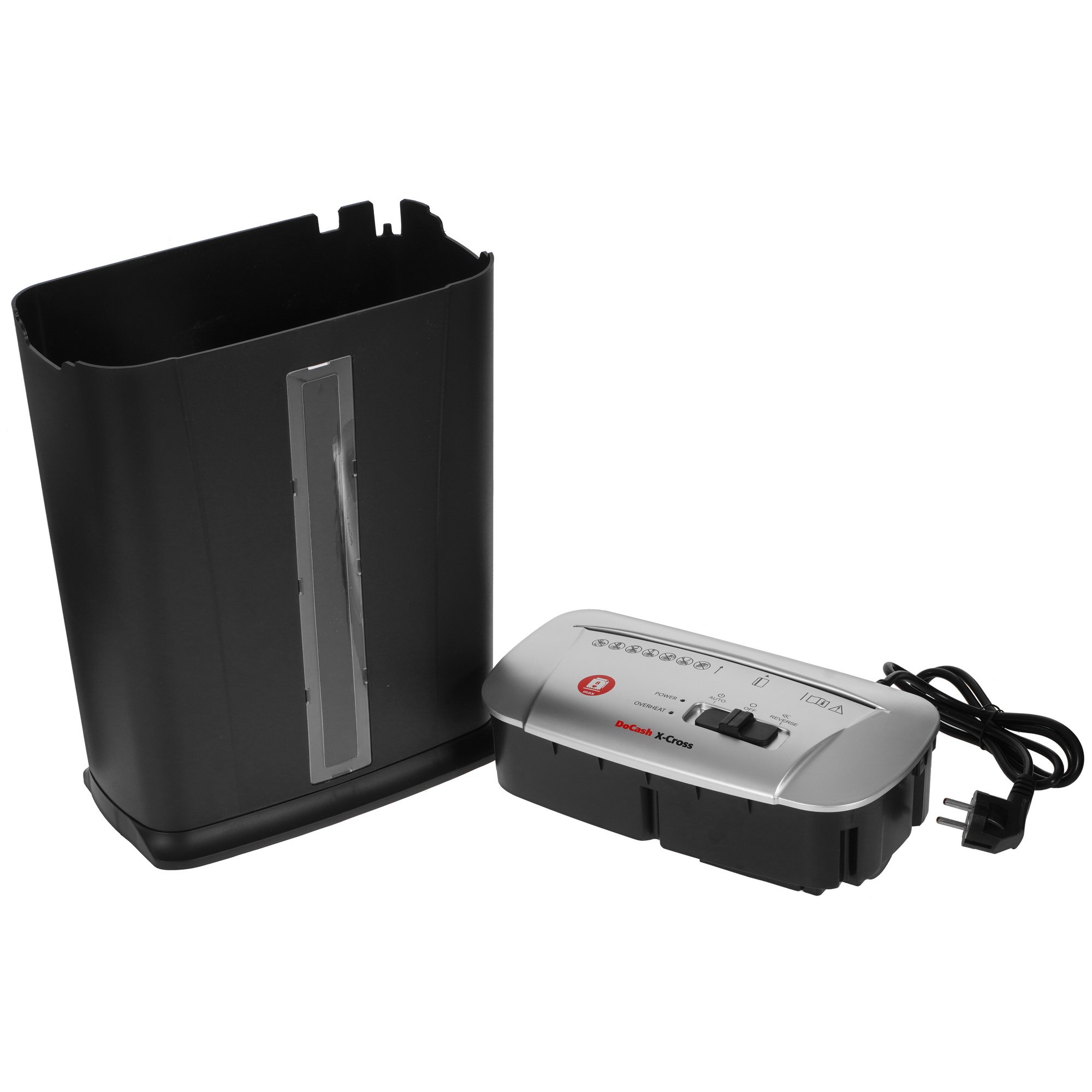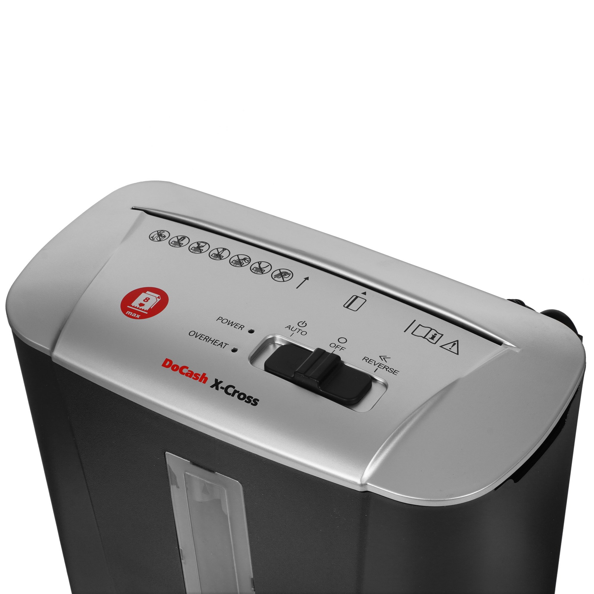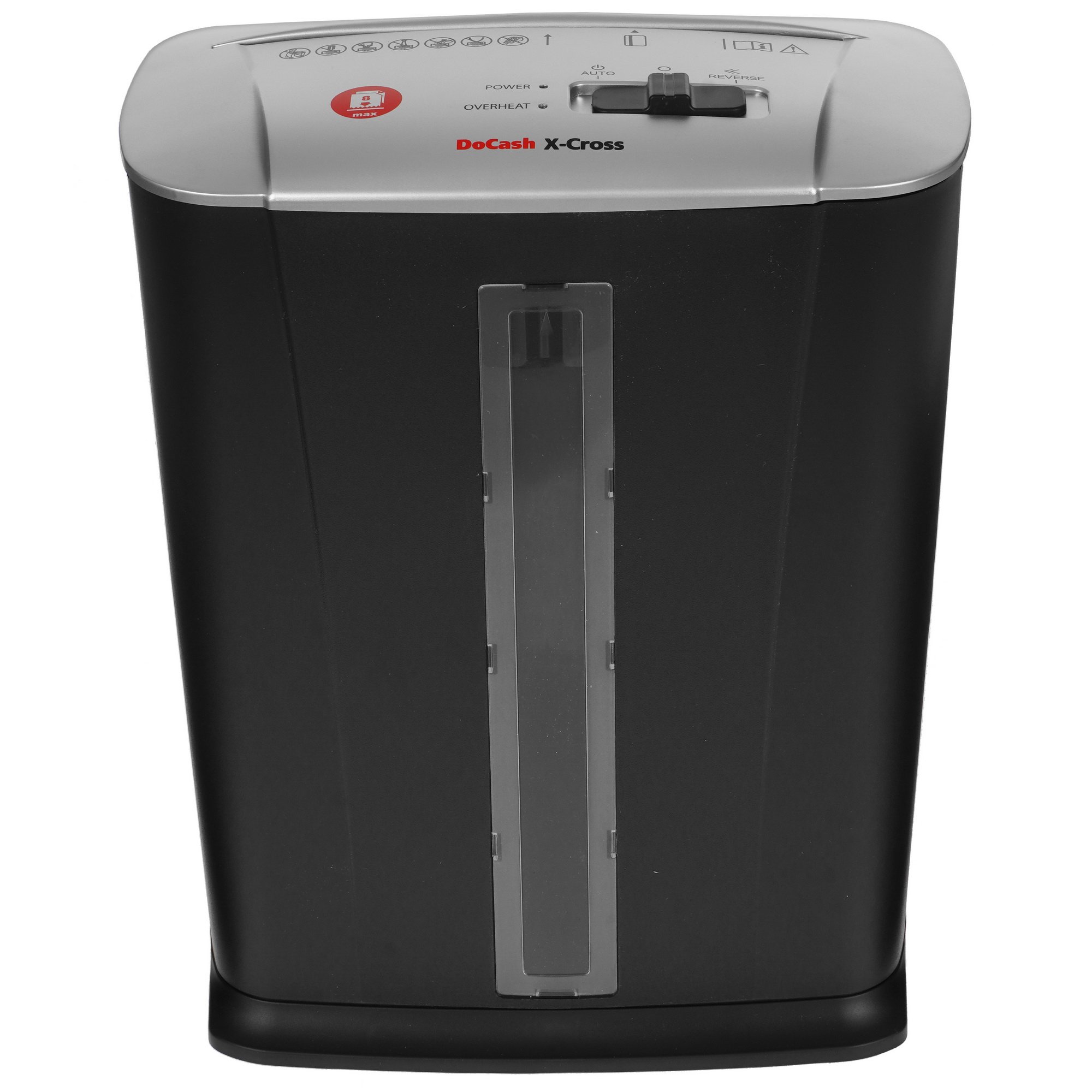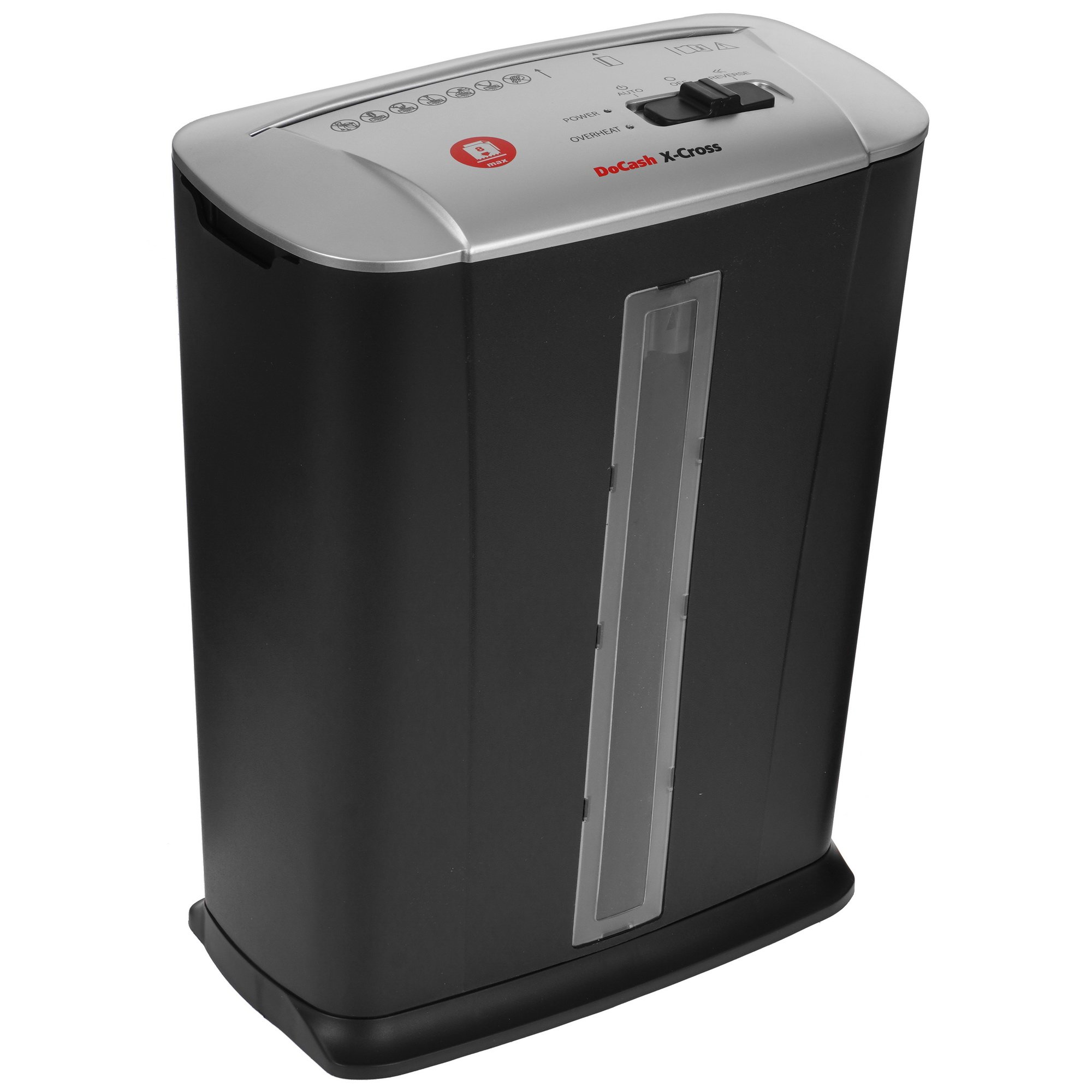 Уничтожитель бумаг DoCash X-CROSS с контейнером объемом 13 л подходит как для офисного, так и для персонального использования в домашних условиях. Надежный режущий механизм позволяет за один раз измельчать на мелкие фракции до 8 листов бумаги, в том числе бумаги со скобами и пластиковыми картами. Функция реверса помогает избавляться от застрявших элементов в режущем блоке. При заполнении корзины уничтожитель автоматически отключается. Помимо этого, в DoCash X-CROSS реализована технология защиты от перегрева.