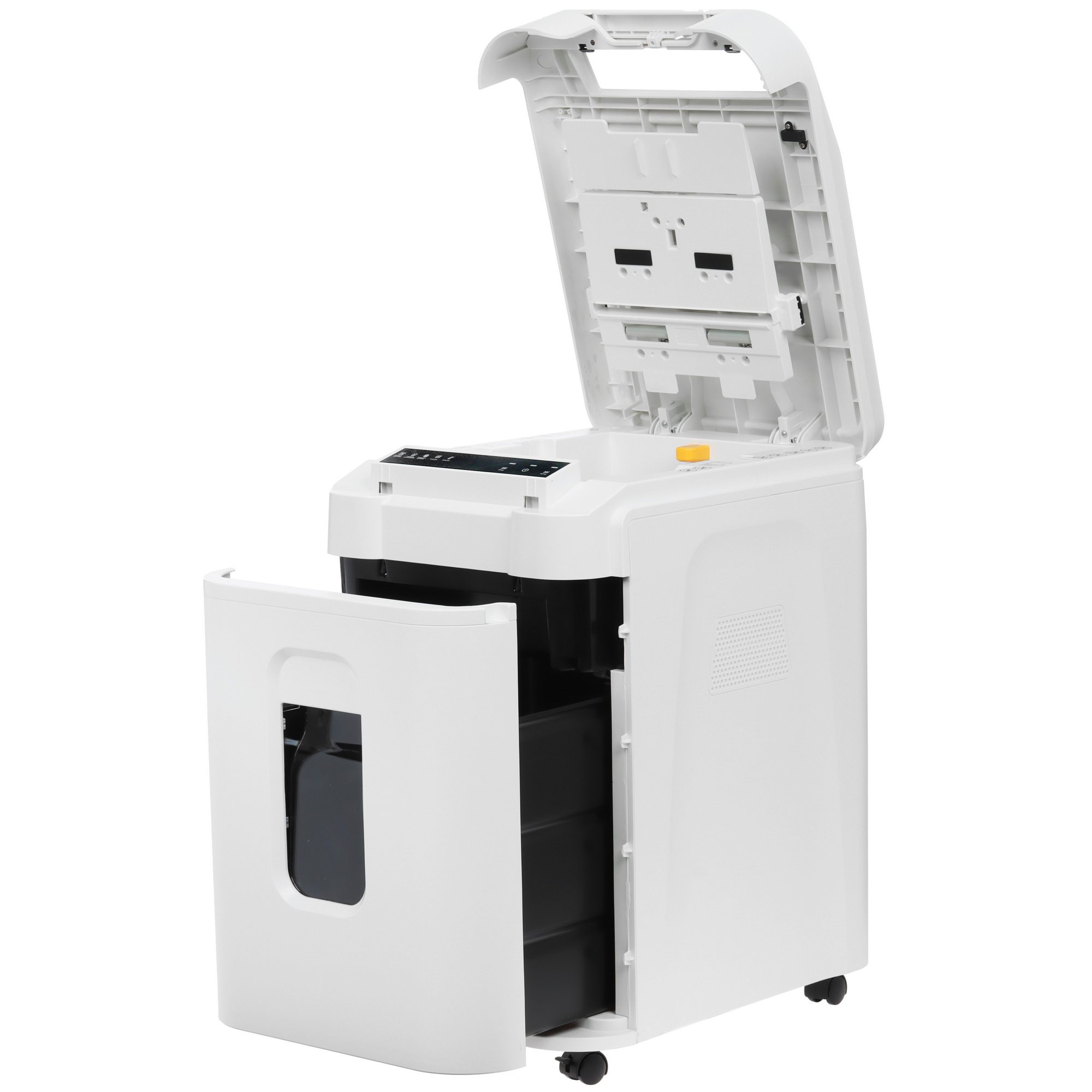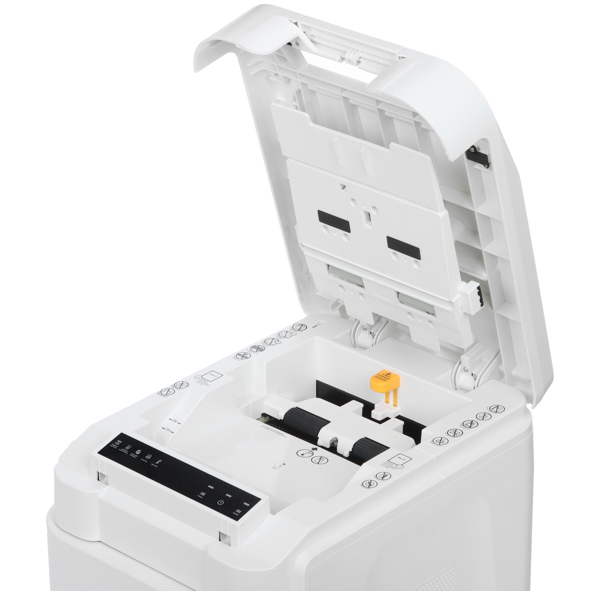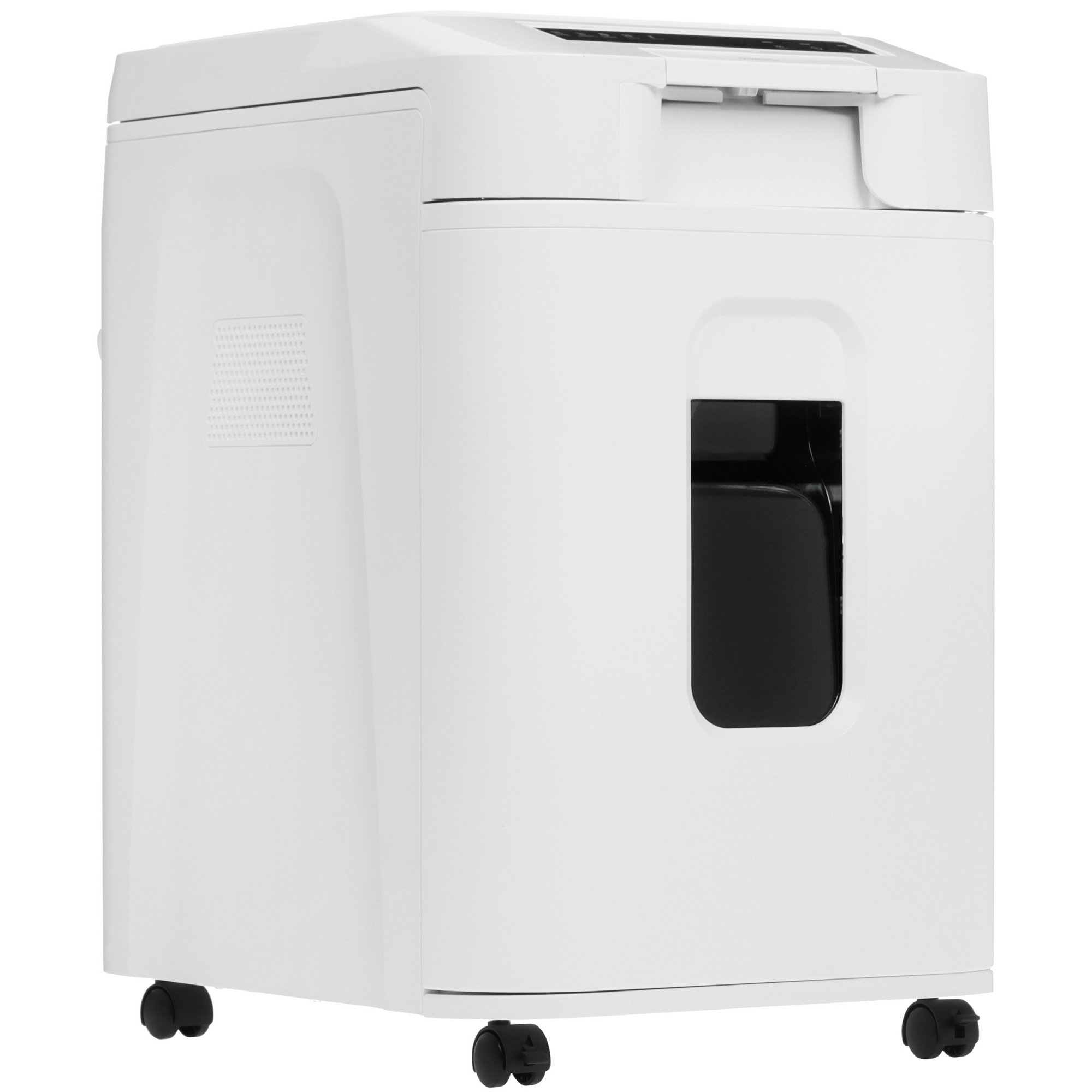 Уничтожитель бумаг ГЕЛЕОС АП37-5 обеспечивает измельчение бумаги на мелкие частицы стопками. Система автоподачи предусматривает загрузку до 200 листов формата А4 с плотностью 80 г/м². Механизм измельчения выполняет перекрестную нарезку до 13 листов одновременно, а также справляется с резкой пластиковых карт, скрепок и скоб. Выдвижная корзина имеет объем 37 л.