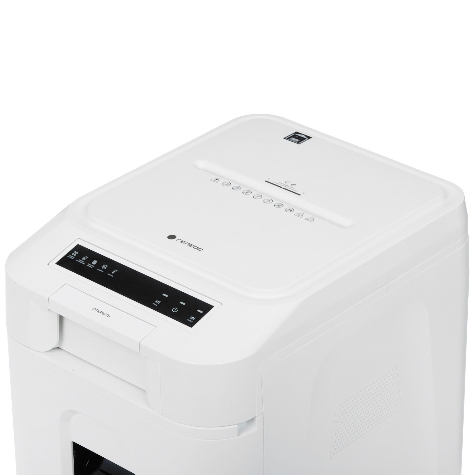 Шредер Heleos АП37-5 белый/белый с автоподачей (секр.P-5) фрагменты 220лист. 37лтр. скрепки скобы пл.карты