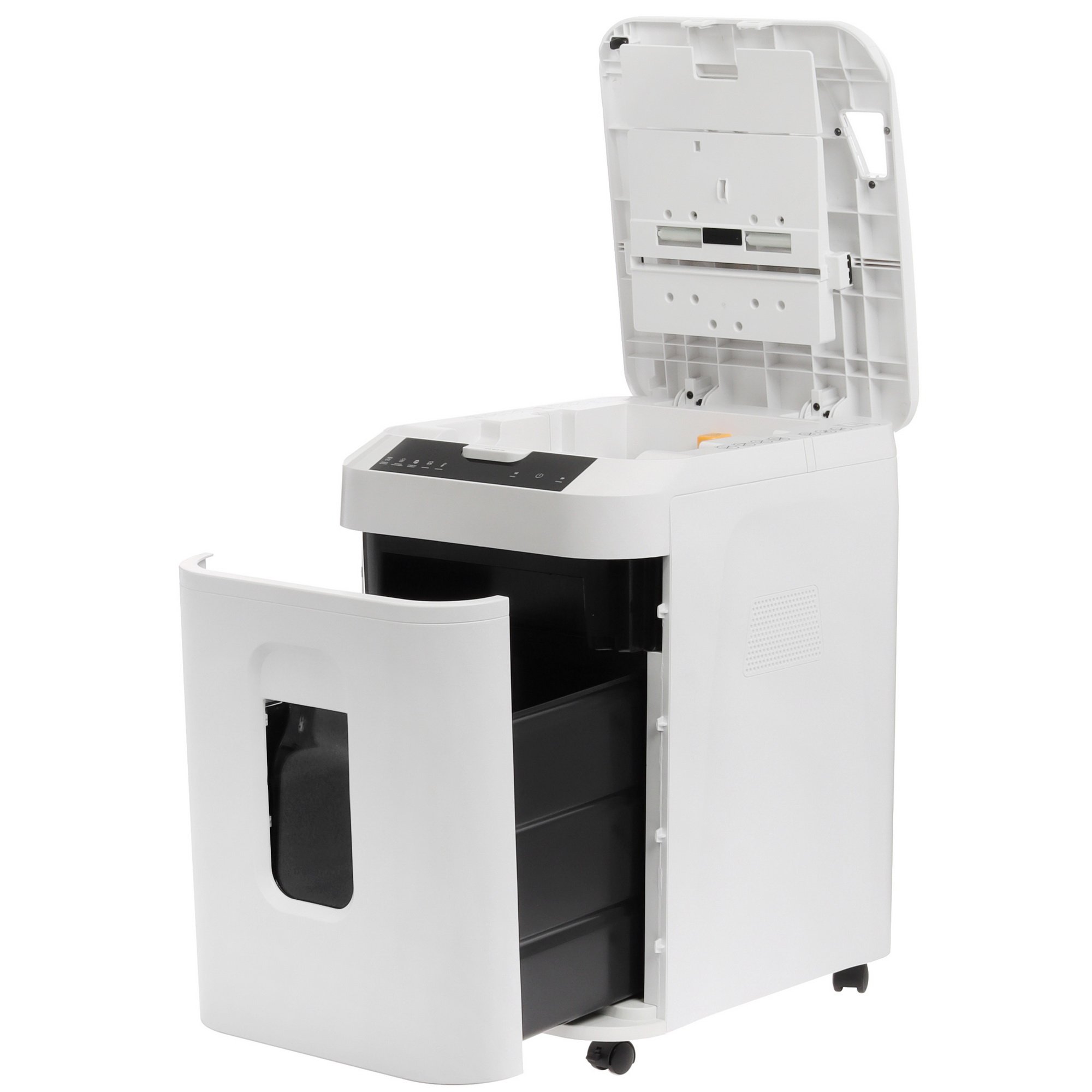 Шредер Heleos АП40-5 белый с автоподачей (секр.P-5) фрагменты 180лист. 37лтр. скрепки скобы пл.карты