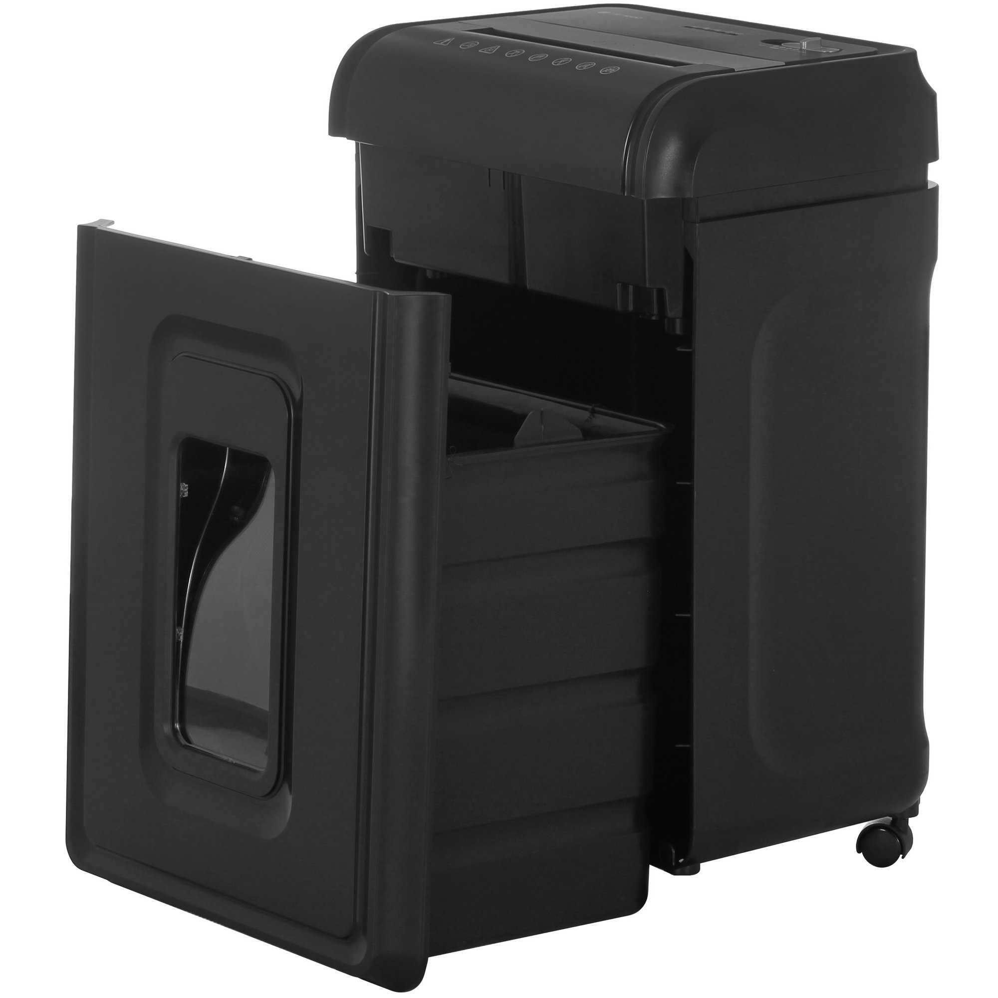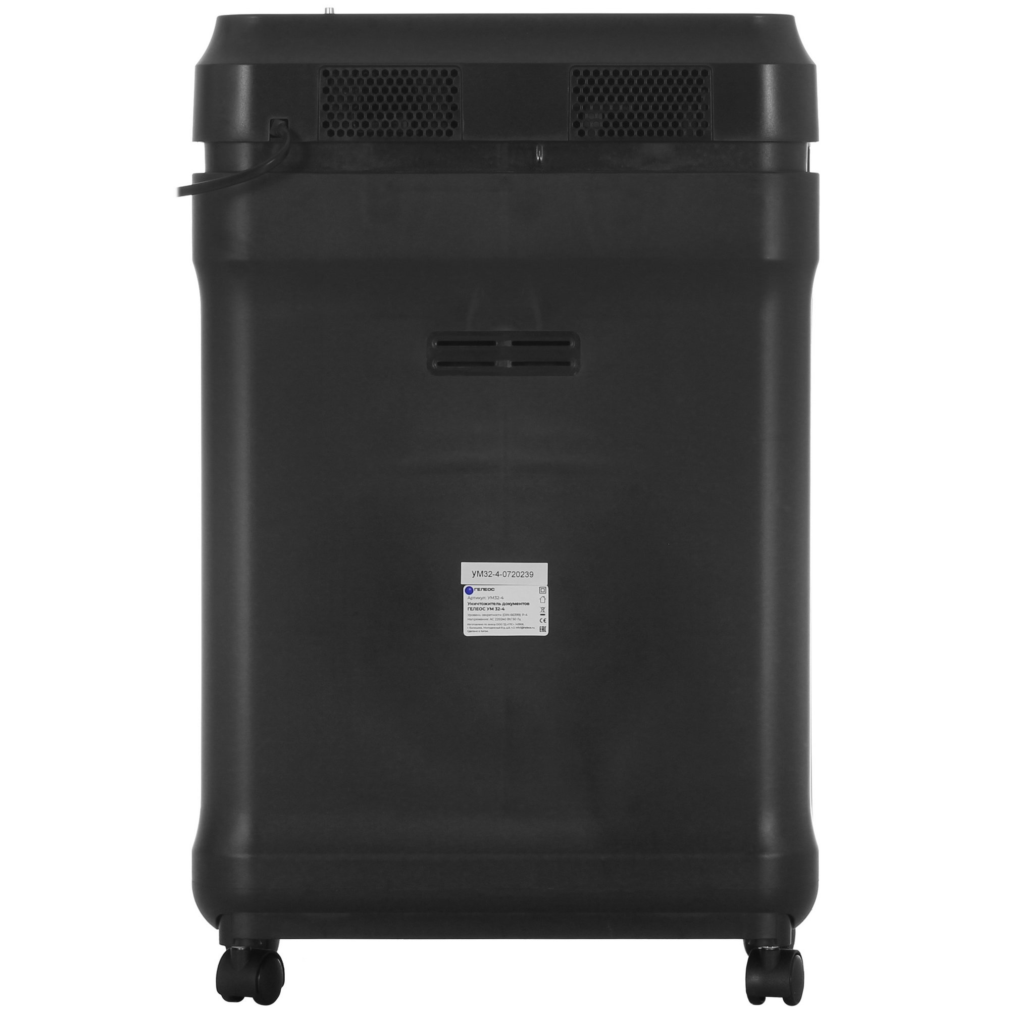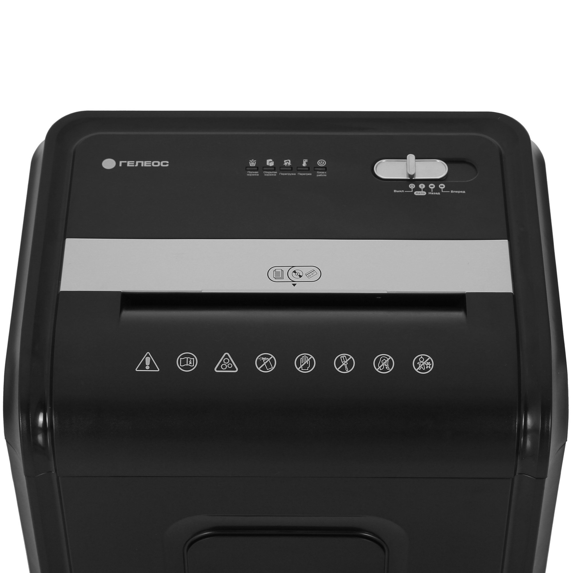 Офисный уничтожитель бумаг ГЕЛЕОС УМ32-4 выполнен в черном корпусе на колесиках со смотровым окном. Специальные индикаторы оповещают о готовности устройства к работе и перегреве двигателя, открытой или заполненной корзине, замятии листов. Устройство с уровнем секретности P-4 выполняет перекрестную нарезку на частицы размерами 4x30 мм.