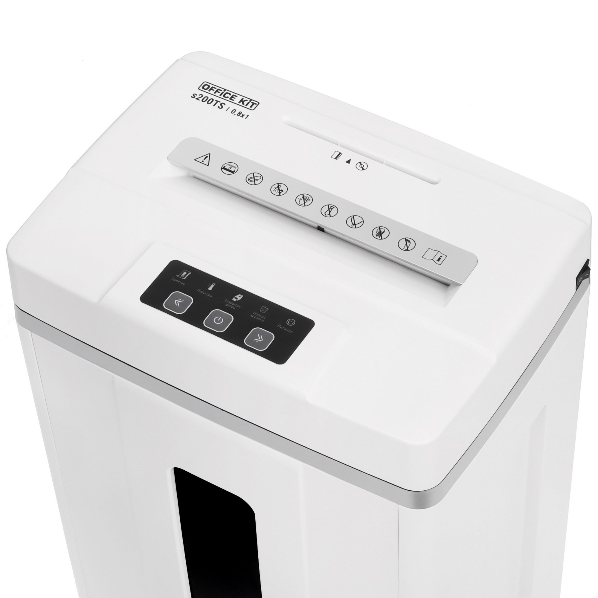 Шредер Office Kit S200TSCD 0,8x1 белый (секр.P-7) фрагменты 6лист. 25лтр. скобы пл.карты CD