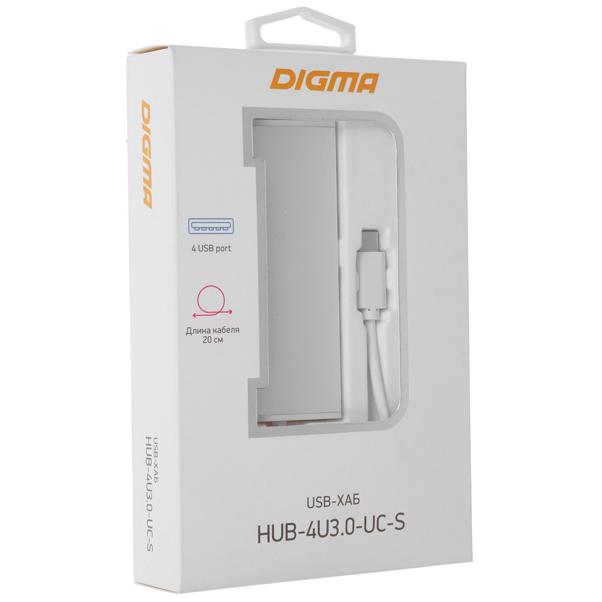 Разветвитель USB-C Digma HUB-4U3.0-UC-S 4порт. серебристый