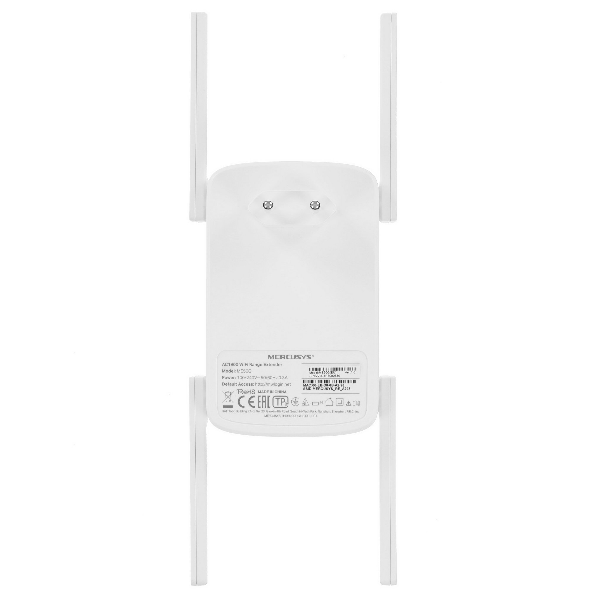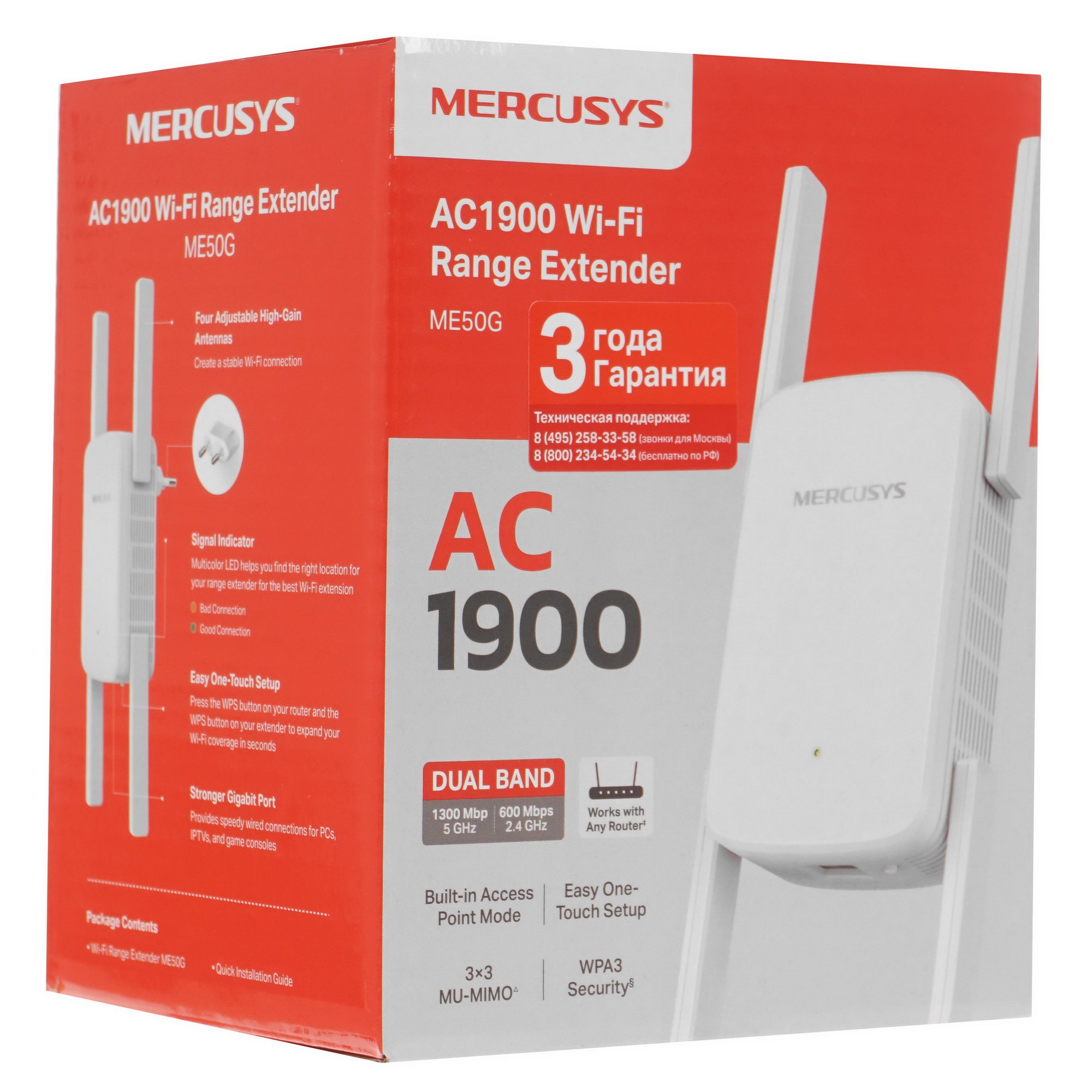 Роутер AC1900 Wi-Fi Range ExtenderSPEED: 600 Mbps at 2.4 GHz + 1300 Mbps at 5 GHz SPEC:4× Fixed External Antennas, 1× Gigabit Port, Wall PluggedFEATURE: MERCUSYS APP, WPS/Reset Button, Signal Indicator, Range Extender/Access Point mode, Adaptive Path