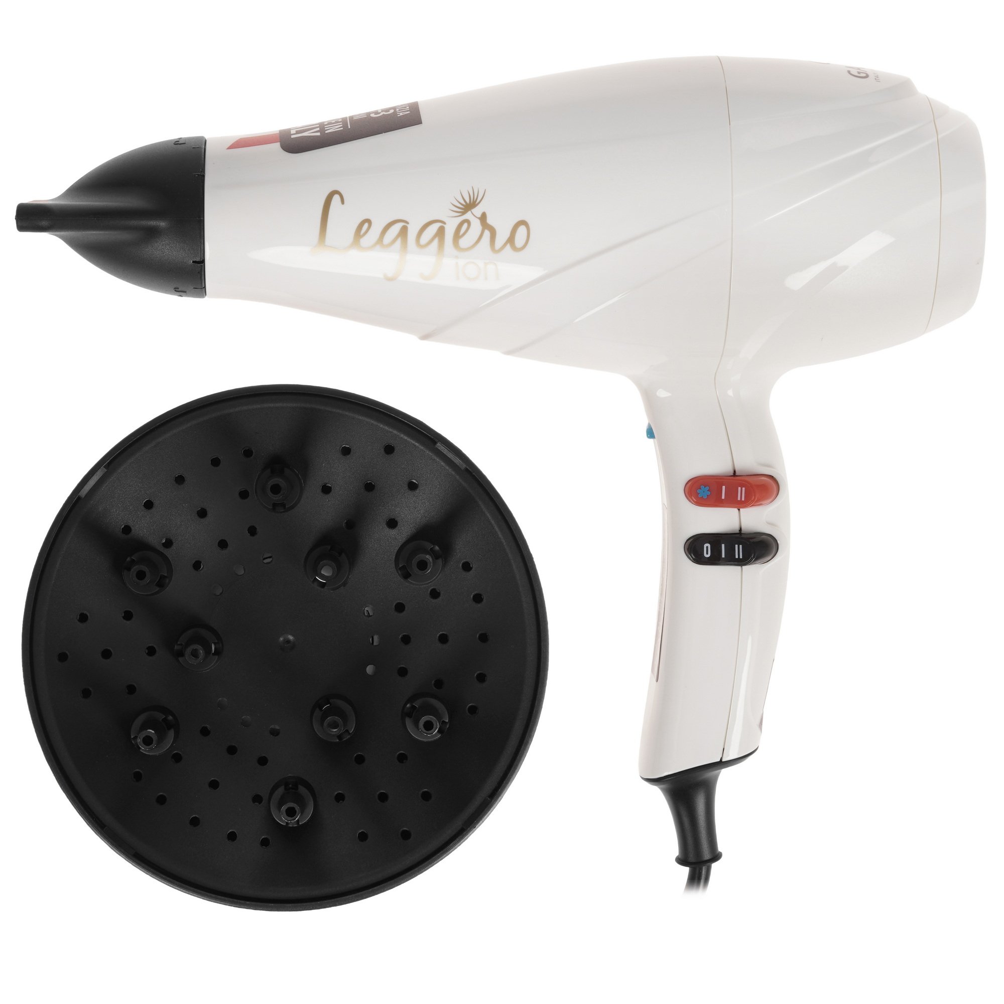 Фен GA.MA LEGGERO ION/A21 отличается высокой мощностью. Несколько режимов нагрева позволяют подобрать оптимальную температуру для конкретного типа волос.