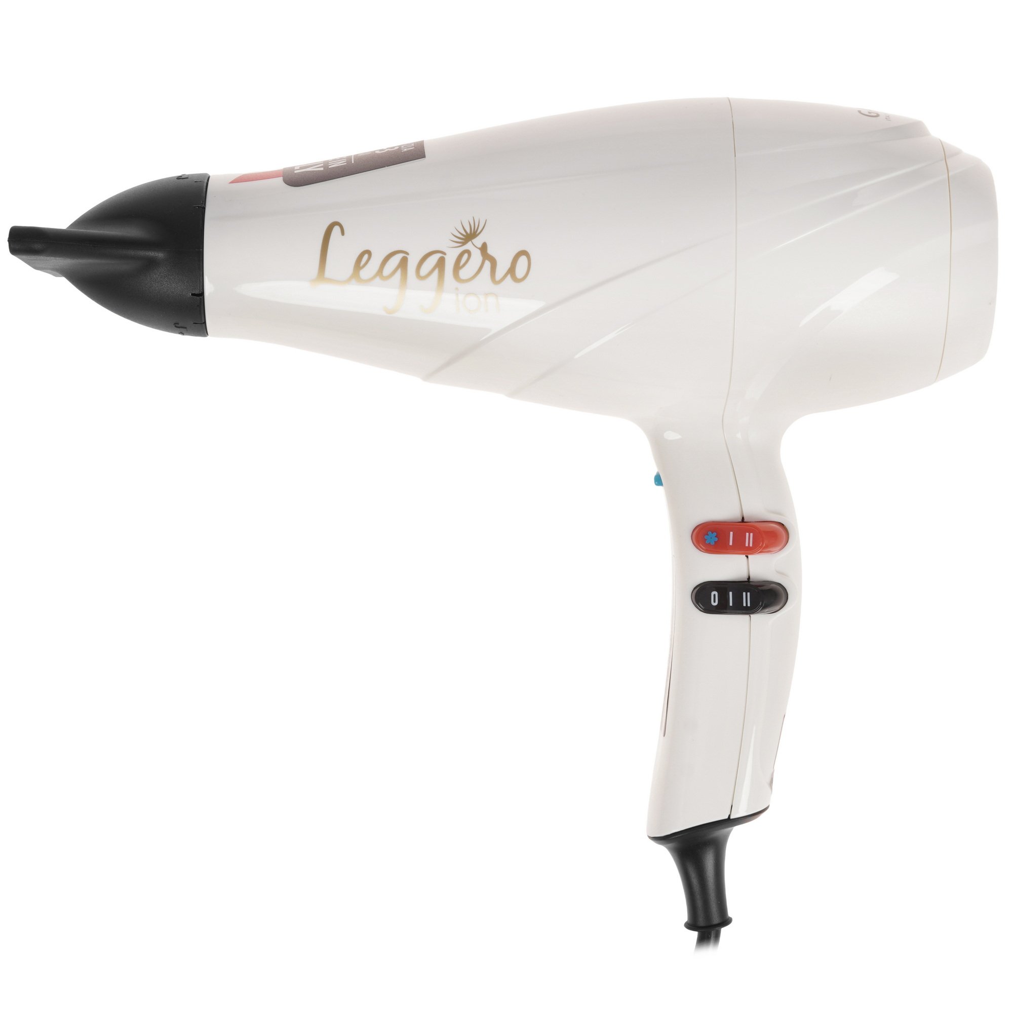 Переключатели производитель расположил сбоку, поэтому регулировать температуру или поток воздух можно не прерывая процесс сушки. Сетевой шнур достаточно длинный – 3 м. Поэтому вовсе не обязательно иметь розетку рядом с тем местом, где вы планируете делать прическу. GA.MA LEGGERO ION/A21 многие покупают и для домашнего пользования, и в подарок.