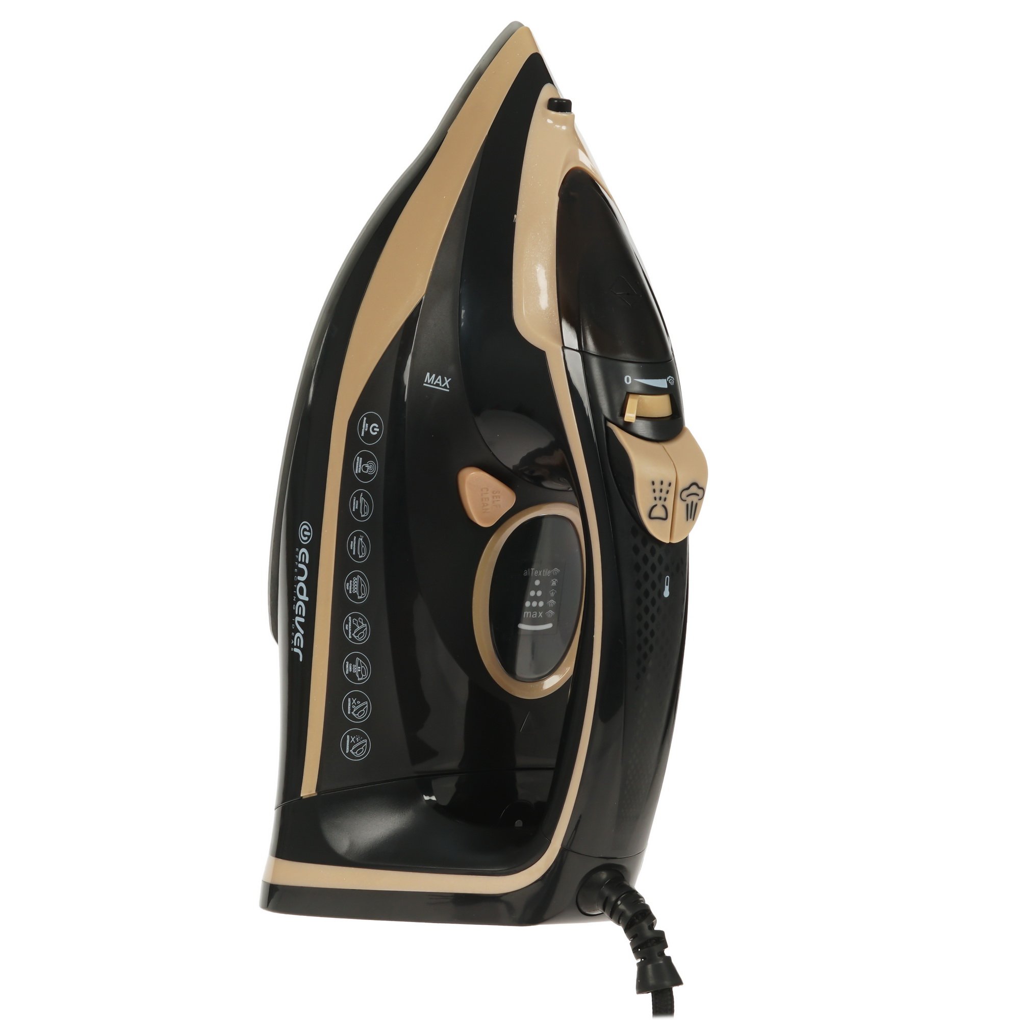 Утюг Endever Delta-226 в корпусе черного цвета имеет сенсорную панель управления для регулировки интенсивности подачи пара и температуры нагрева подошвы. Настройки отображаются на функциональном дисплее. Режим очистки удаляет известковый налет и не допускает забивание отверстий на подошве. Режим «Вертикальное отпаривание» позволяет разутюжить тюль и шторы, не снимая их с карниза.