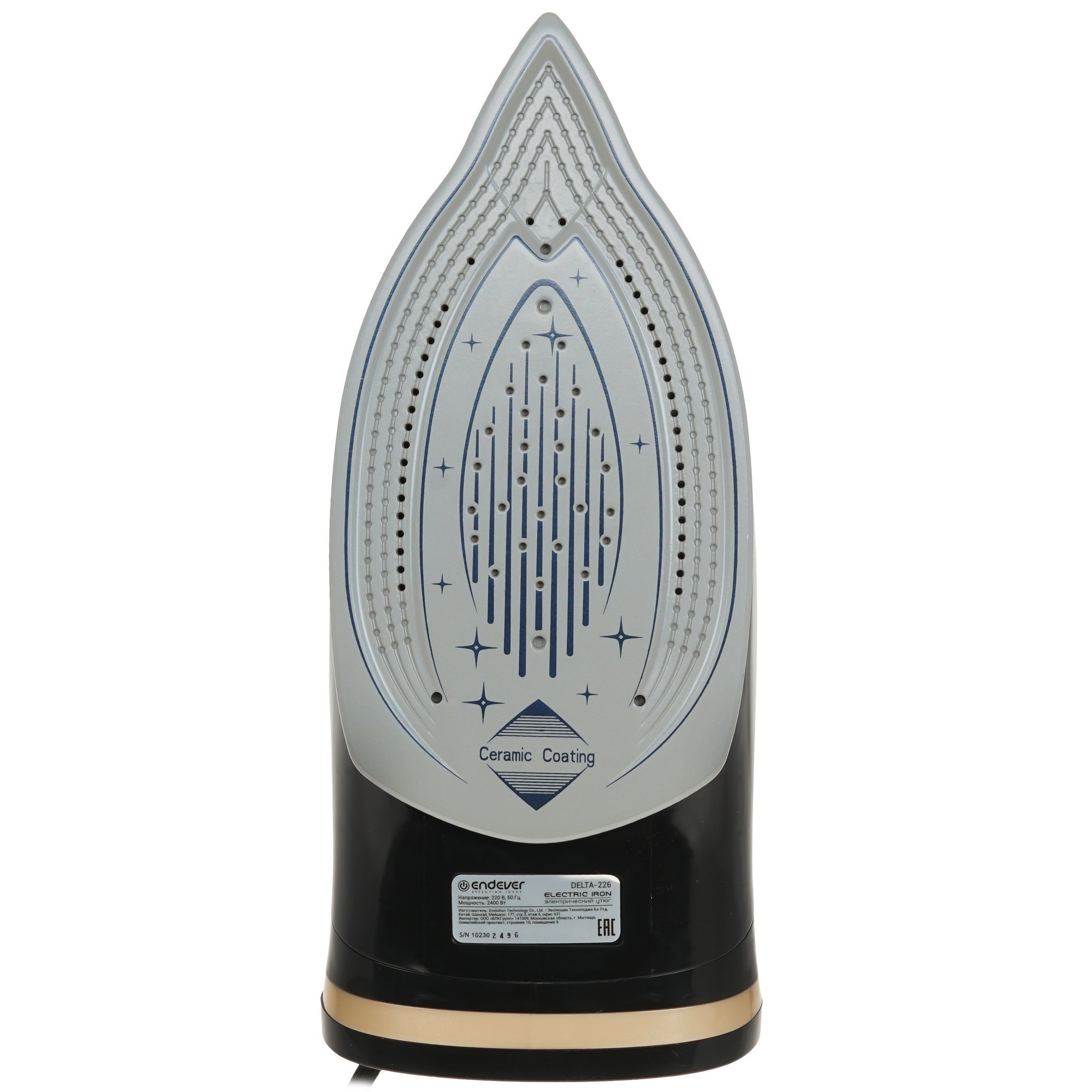 Endever Delta-226 подключается к сети через 1.6-метровый кабель с шаровым креплением, которое предупреждает спутывание и появление заломов. Функция «Сухое глаженье» предназначена для разутюживания тонкой подкладочной ткани без разводов. Керамическая подошва Ceramic Coating не оставляет блестящих следов на одежде и легко скользит по любым материалам. Противокапельная система предупреждает вытекание воды из 0.35-литрового резервуара.