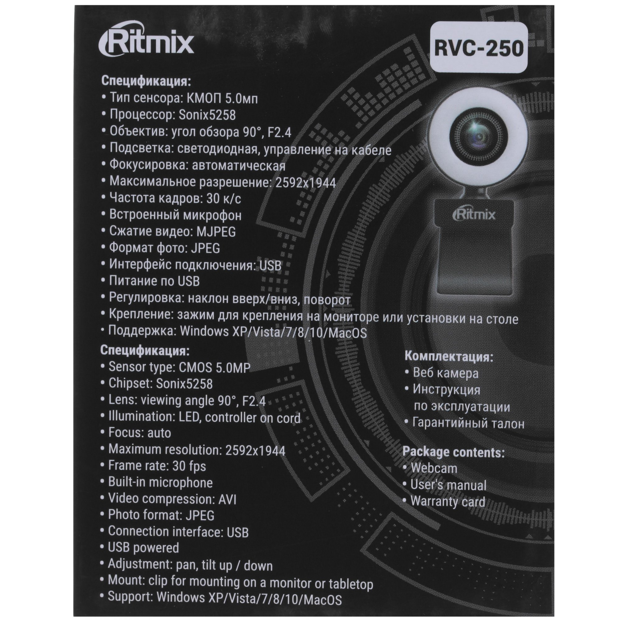 Веб-камера Ritmix RVC-250 позволяет снимать четкое, качественное видео, вести онлайн-трансляции. Благодаря разрешению 2592x1944 и матрице 5 Мп она будет незаменимой не только для дома, но и для офисов и крупных корпораций. Устройство содержит встроенный микрофон, который позволит вашему собеседнику получить четкий звук голоса. Для крепления веб-камеры на монитор используется прищепка. Подключается она при помощи провода через USB 2.0.