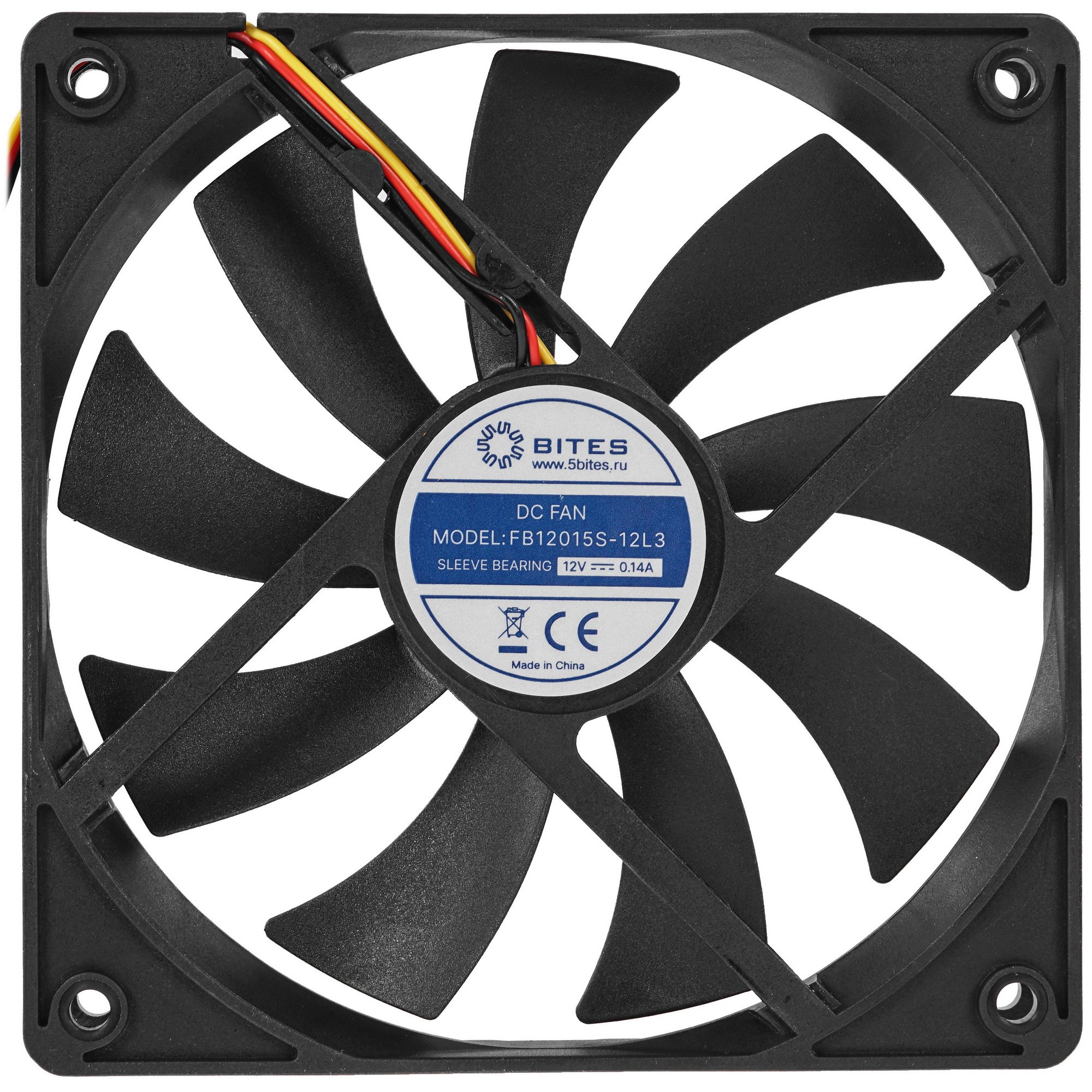 5Bites [FB12015S-12L3 оснащен простым по конструкции подшипником скольжения. Кулер выдерживает работу с напряжением 12 В и предельным током 200 мА. Вентилятор идет в комплекте с крепежами для фиксации в корпусе процессора.